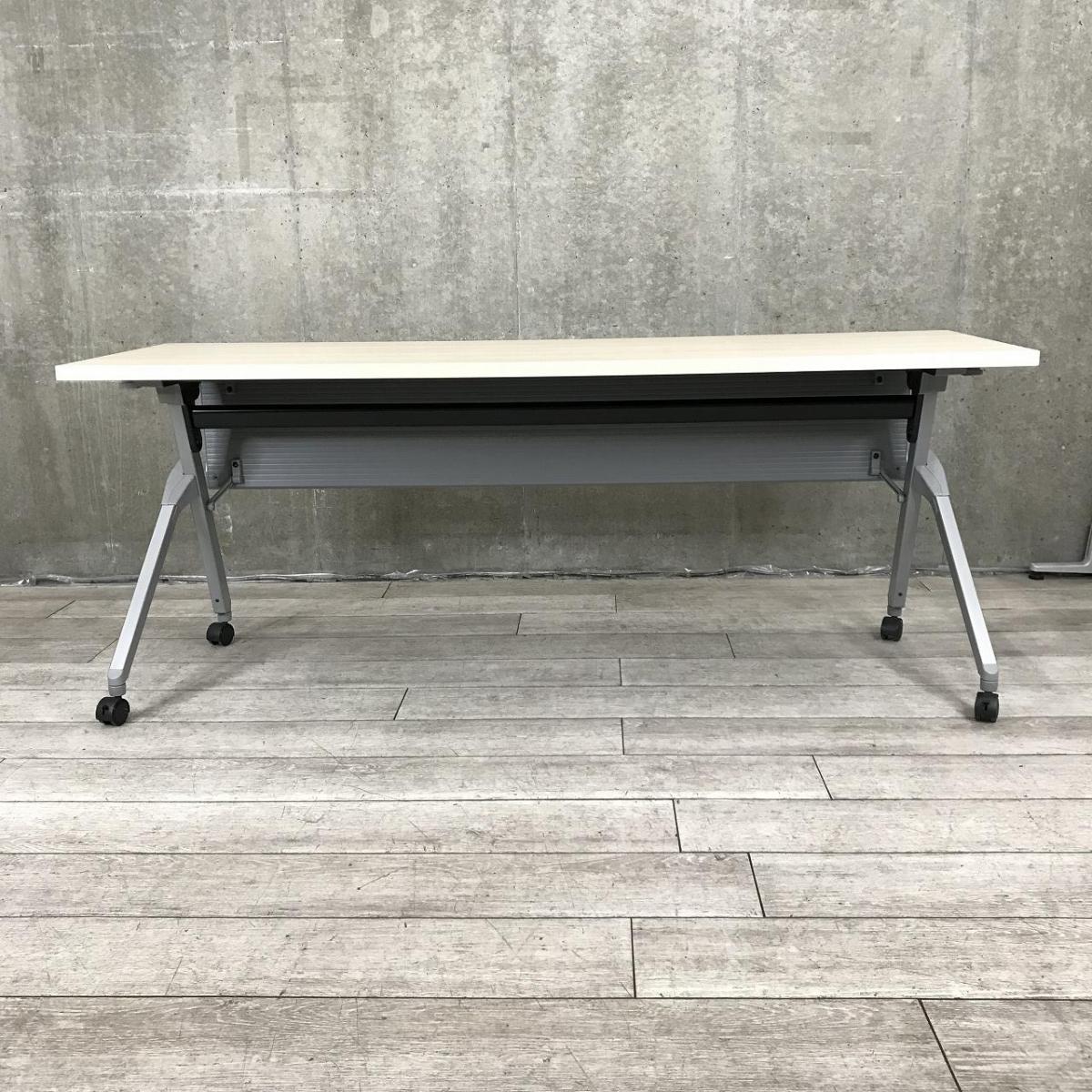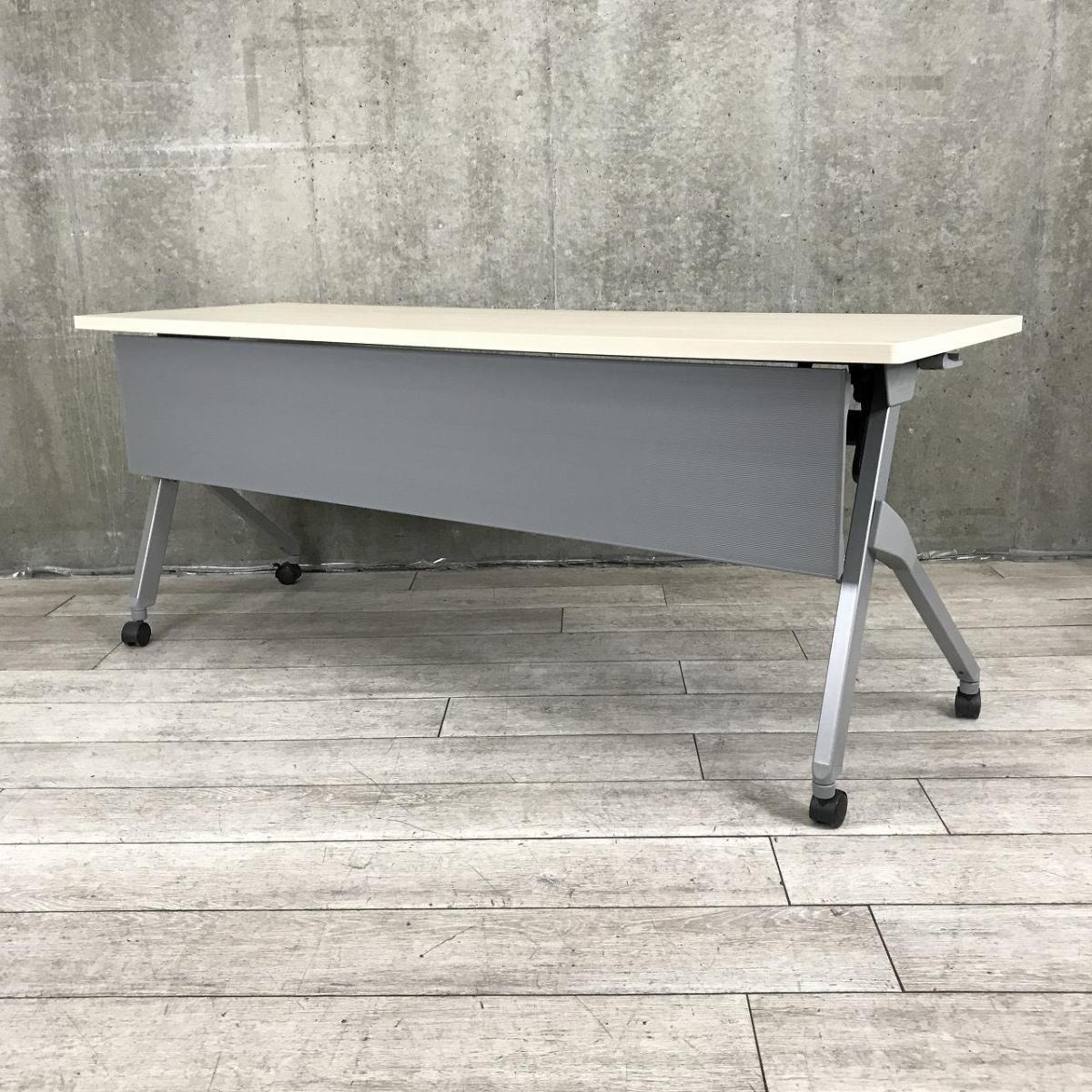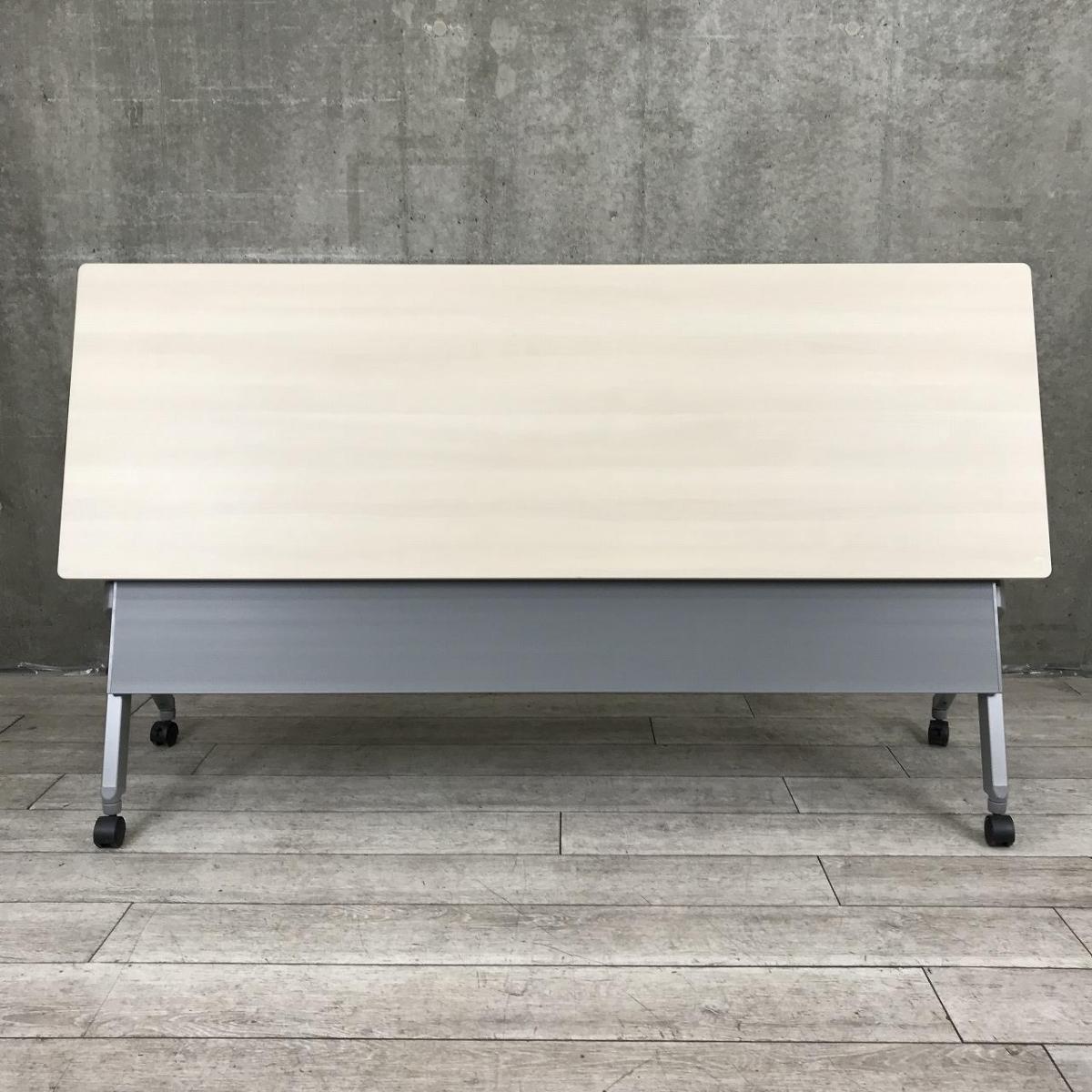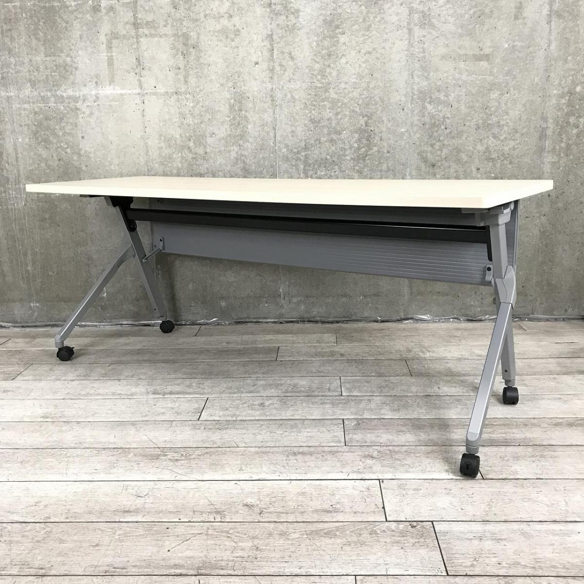 【W1500の折り畳みテーブルが入荷!】◆オカムラ/フラプター ナチュラル 木目 サイドスタックテーブル 収納 中古 博多 天神 九州最大級 オフィスバスターズ