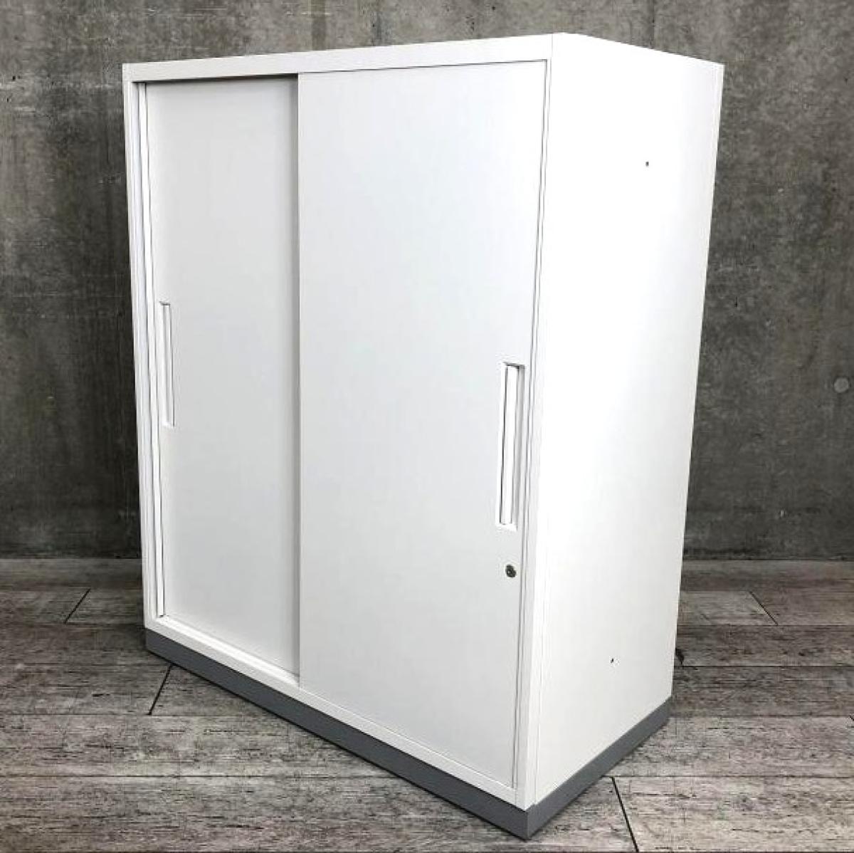 【人気の引き違い戸タイプ!取っ手が大きく使い勝手のよい定番キャビネット!】■イナバ(Inaba)製 TFシリーズ 引き違い書庫 ローキャビネット W900×D450㎜ ■ホワイト /ベース:グレー ■シリンダー錠 ※日焼けあり