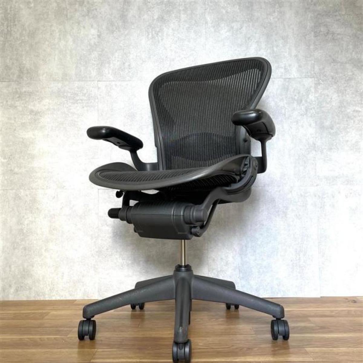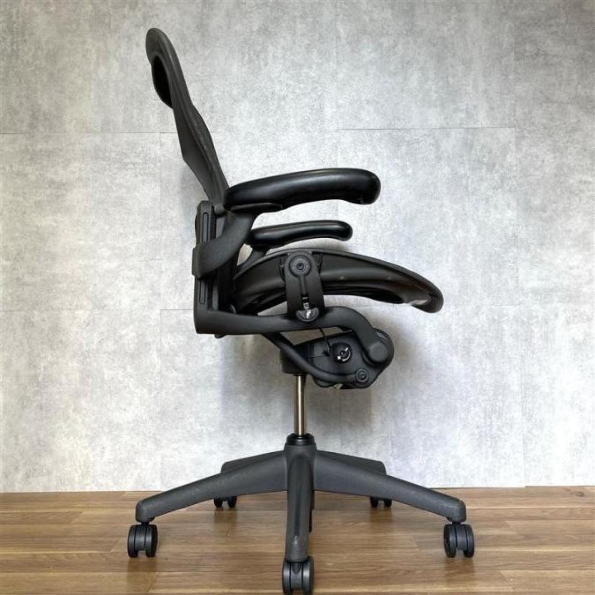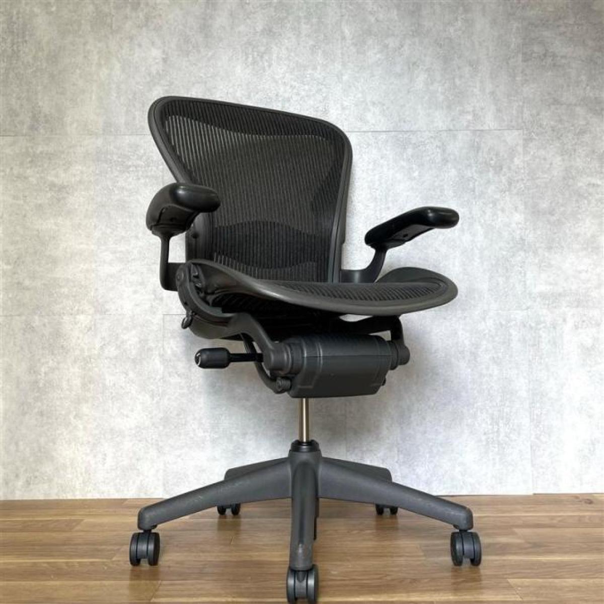 【★状態イマイチのためお安く!】■ハーマンミラー製 アーロンチェア Bサイズ 固定肘 ※キズあり・ランバーサポート無・昇降ガス圧弱めのためお安く!【訳あり特価品】