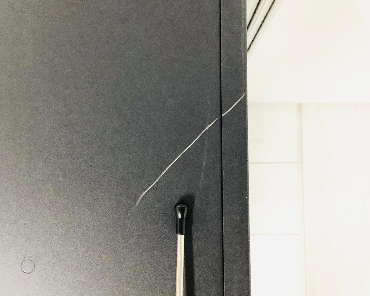 - 目立つ箇所あり傷・凹みが多数、深い傷・凹みが一部ある。(例、天板、正面、背部、サイド部分にある。)