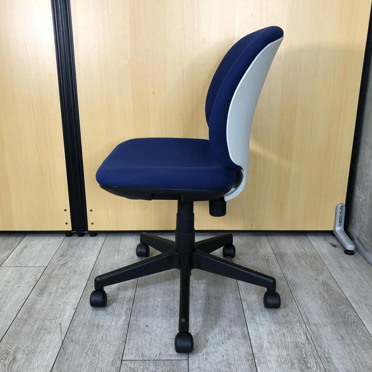 【シンプルなのに上質・座る人を選ばないフィット感!】■プラス製 (PLUS) プリセア (Presea) ローバック 肘無し ■ブルー × シェル ホワイト / 脚 ブラック- なんば日本橋店