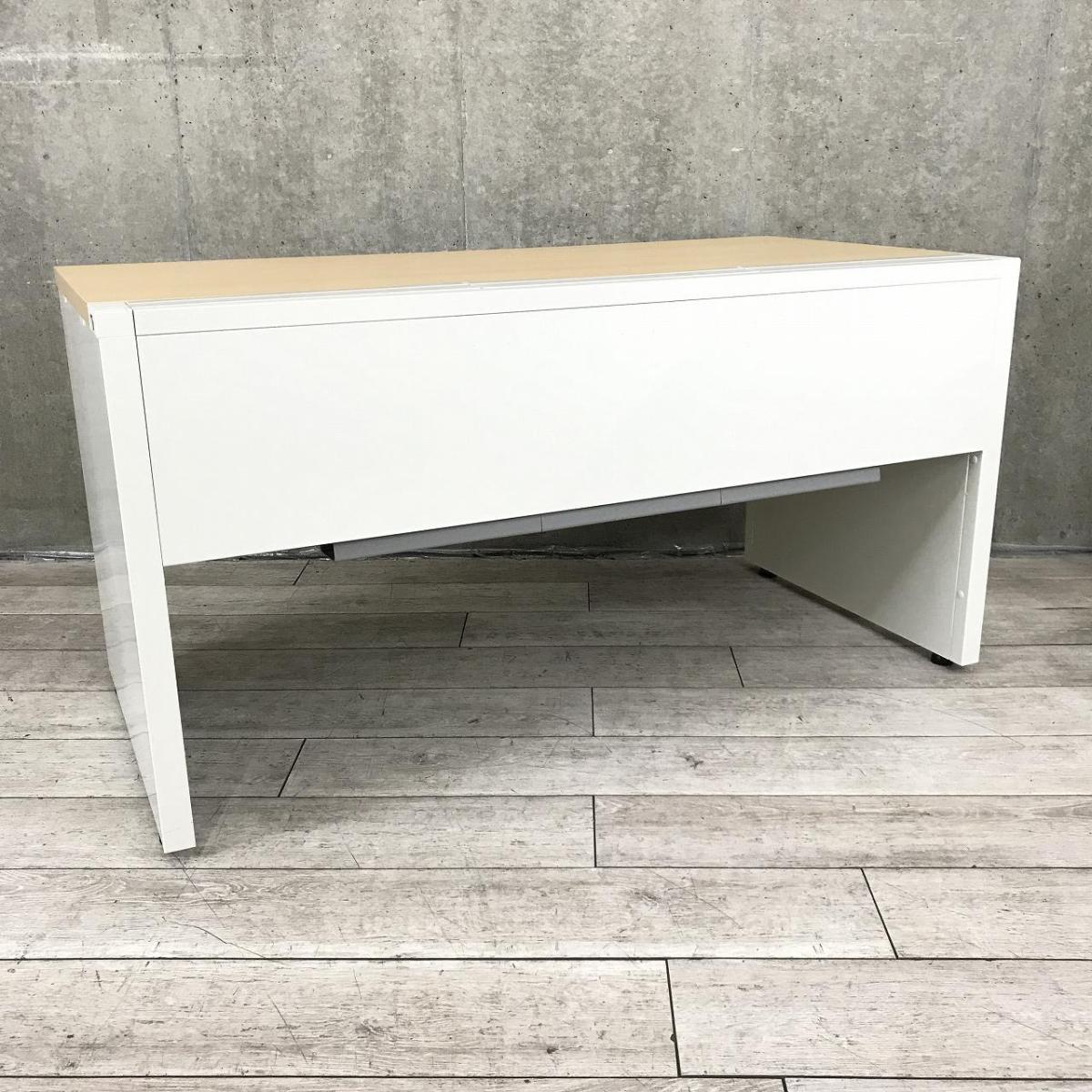 ※天板キズありのためお安く!【見た目を気にしなければお買い得!】■プラス製 平デスク W1400×D700×H720mm ナチュラル木目天板 ホワイトパネル脚 ■ゆとりのあるワークスペースで作業効率アップ!【PLUS STAGEO FREE】- 川崎店