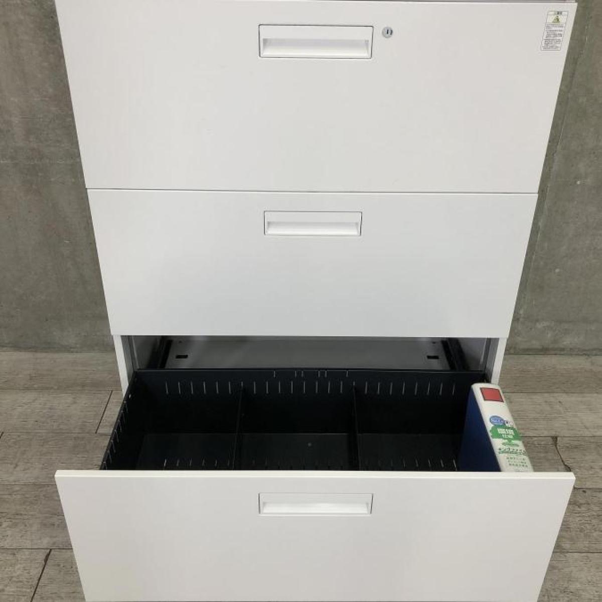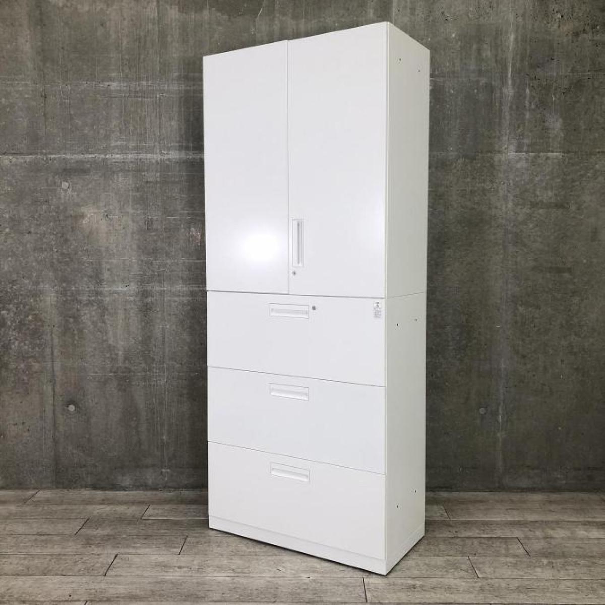 【圧倒的収納力!両開き+引き出しタイプのキャビネットセット!】■コクヨ(KOKUYO)製 エディアシリーズ (EDIA) 両開き+3段ラテラル ハイキャビネット ■ホワイト ■シリンダー錠- 豊中・尼崎店