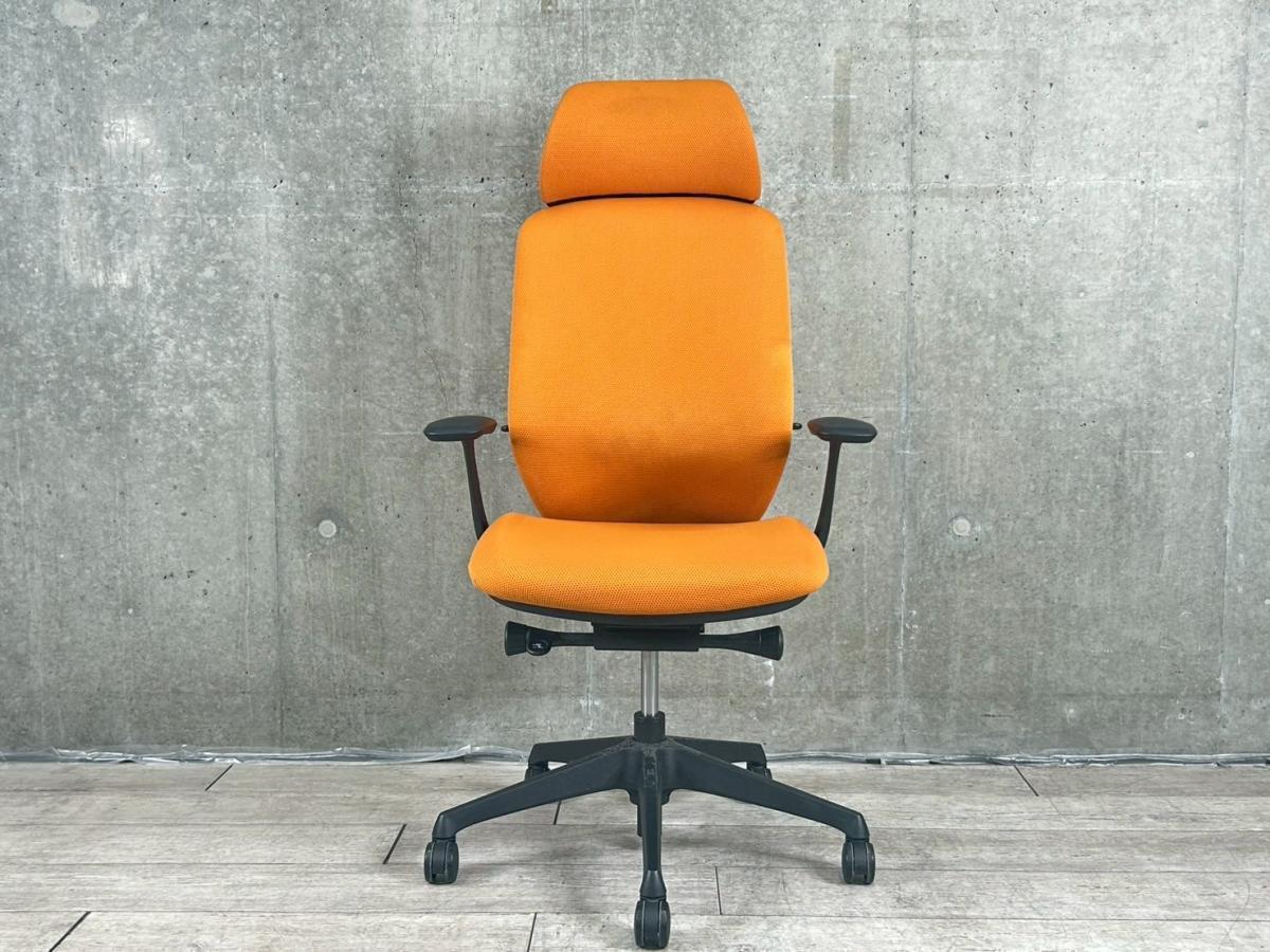 現品限り!新感覚のオフィスシーティング!前傾機能付きで長時間のデスクワークにもおすすめの逸品! ■オカムラ/シルフィー(Sylphy)/オレンジ ブラックフレーム エクストラハイバック 固定肘 ヘッドレスト付きサーキュラーバリューCO2削減量の算出について