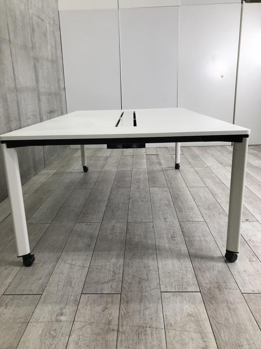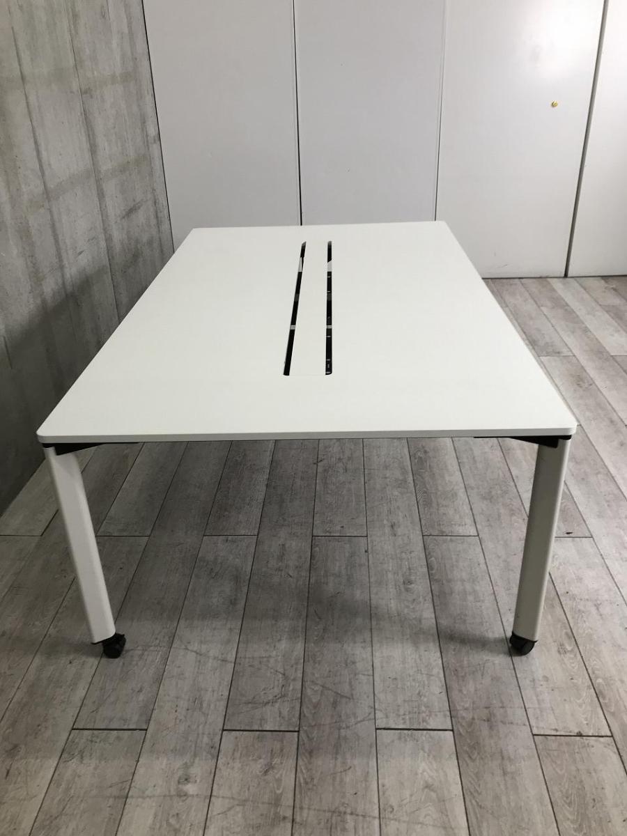 【シンプルで使い勝手抜群!4~6名様での使用におすすめ!!】■ウチダ(UCHIDA)製 ミーティングテーブル 角テーブル W2000×D1200㎜ ■配線カバー/キャスター付 ■ホワイト- つくば店