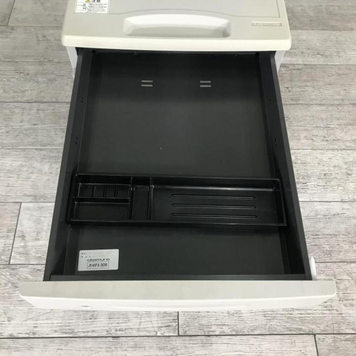 ★【商品入替のため、残り1台限り】オカムラ製 SD ライトグレー H610サイズ シリンダー錠 天板の把手とキャスターで移動がらくらく! シンプルでスタンダードな3段ワゴン! デスクインワゴン 3段ワゴン