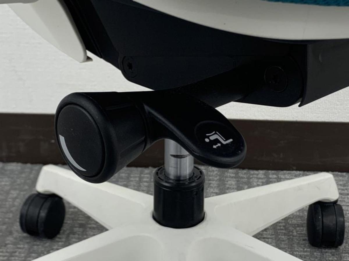 - 座面左下のダイヤルでリクライニングの固定と解除が行えます。 前傾ポジションをとることも可能です。