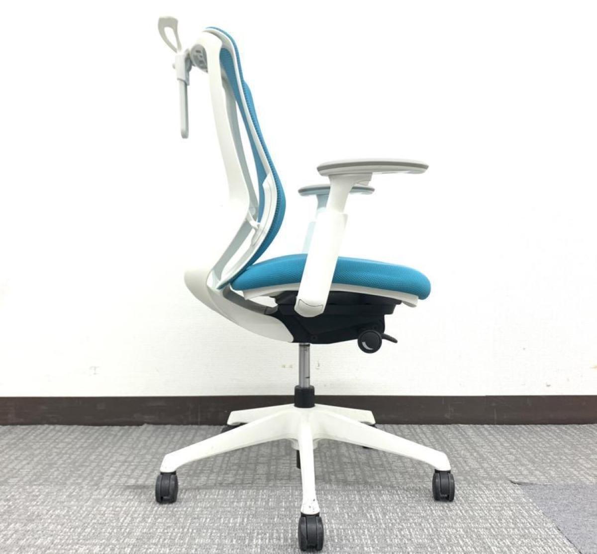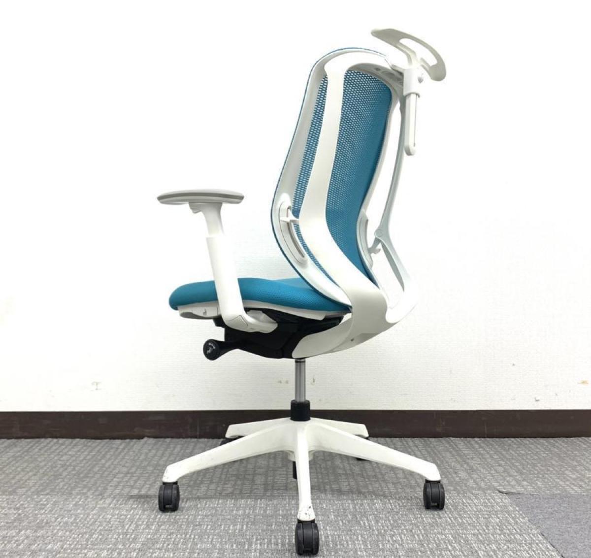 《現物写真だから安心!》オカムラ製の人気オフィスチェア【シルフィーメッシュ/可動肘/ヘッドレスト付き/ブルーグリーン】が先着1名様ご案内可能です!