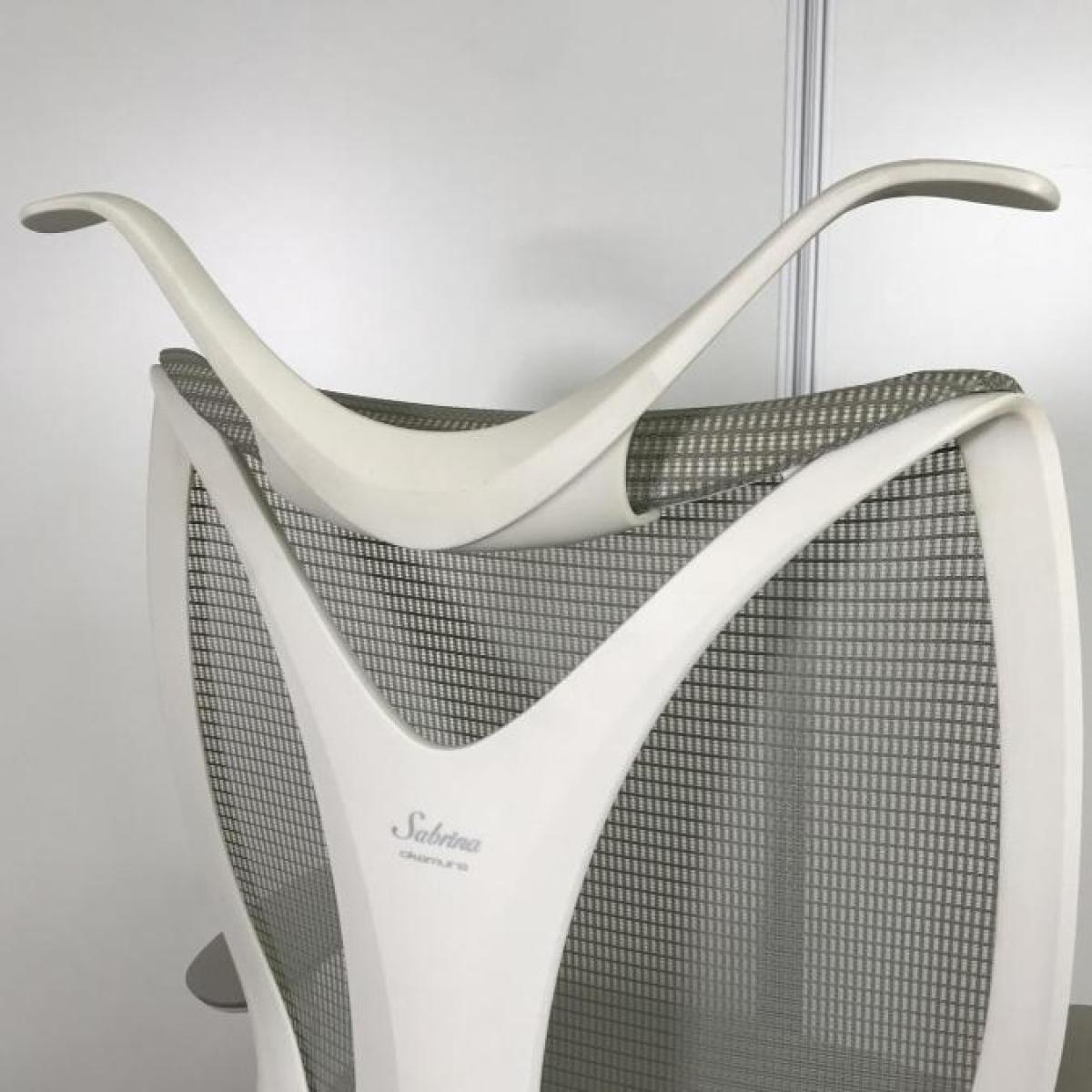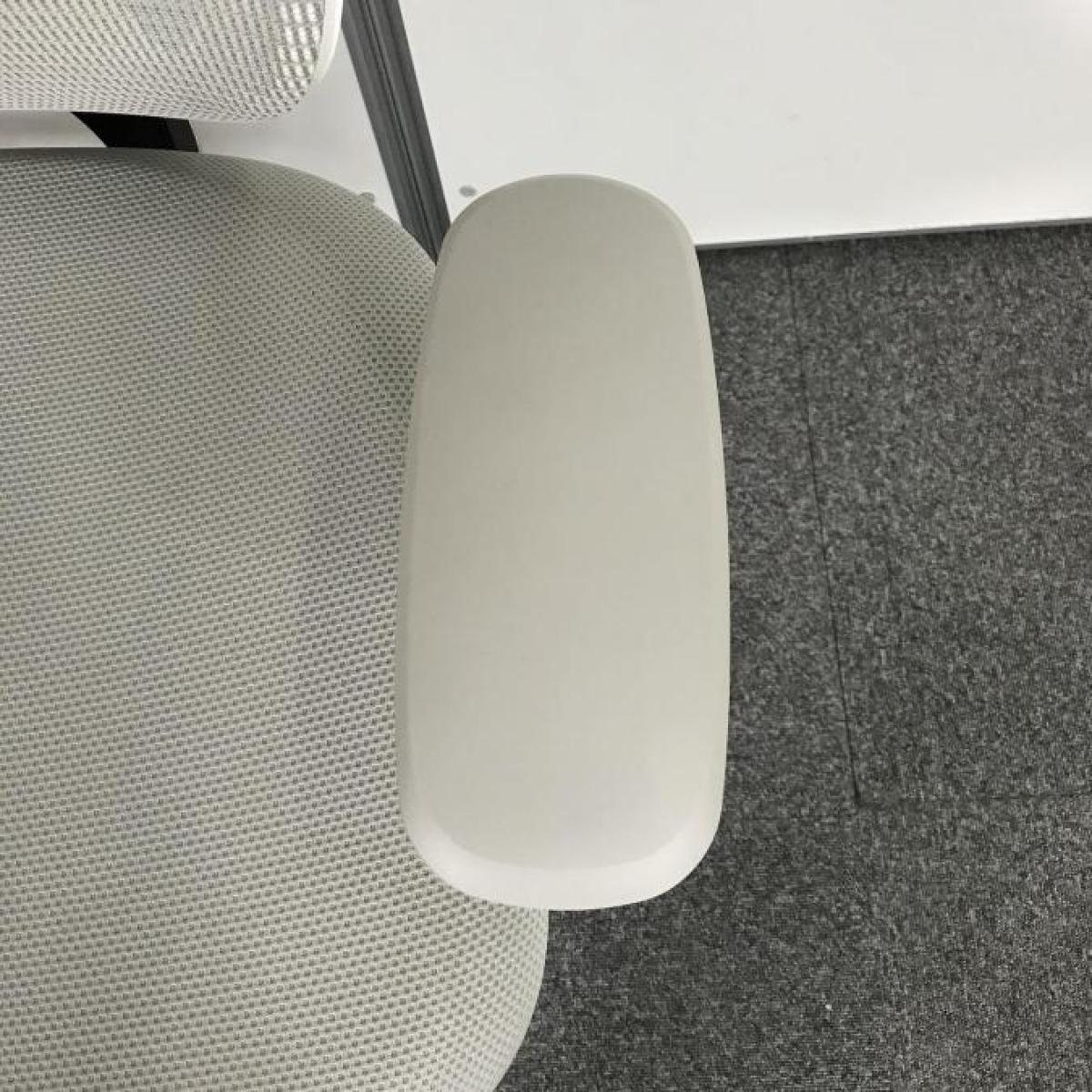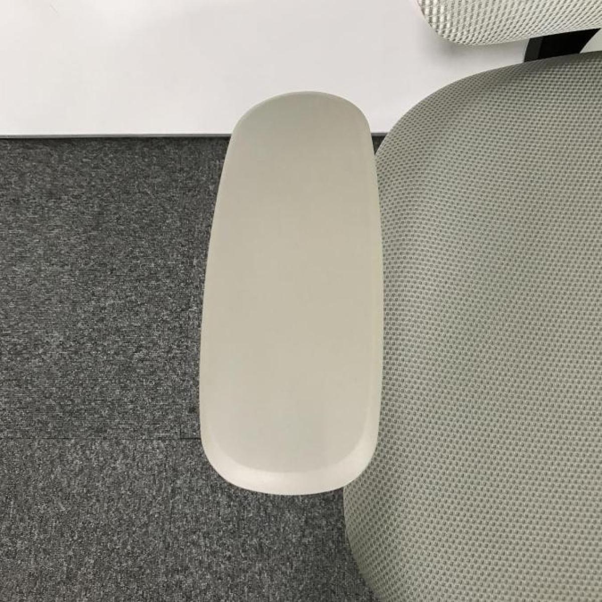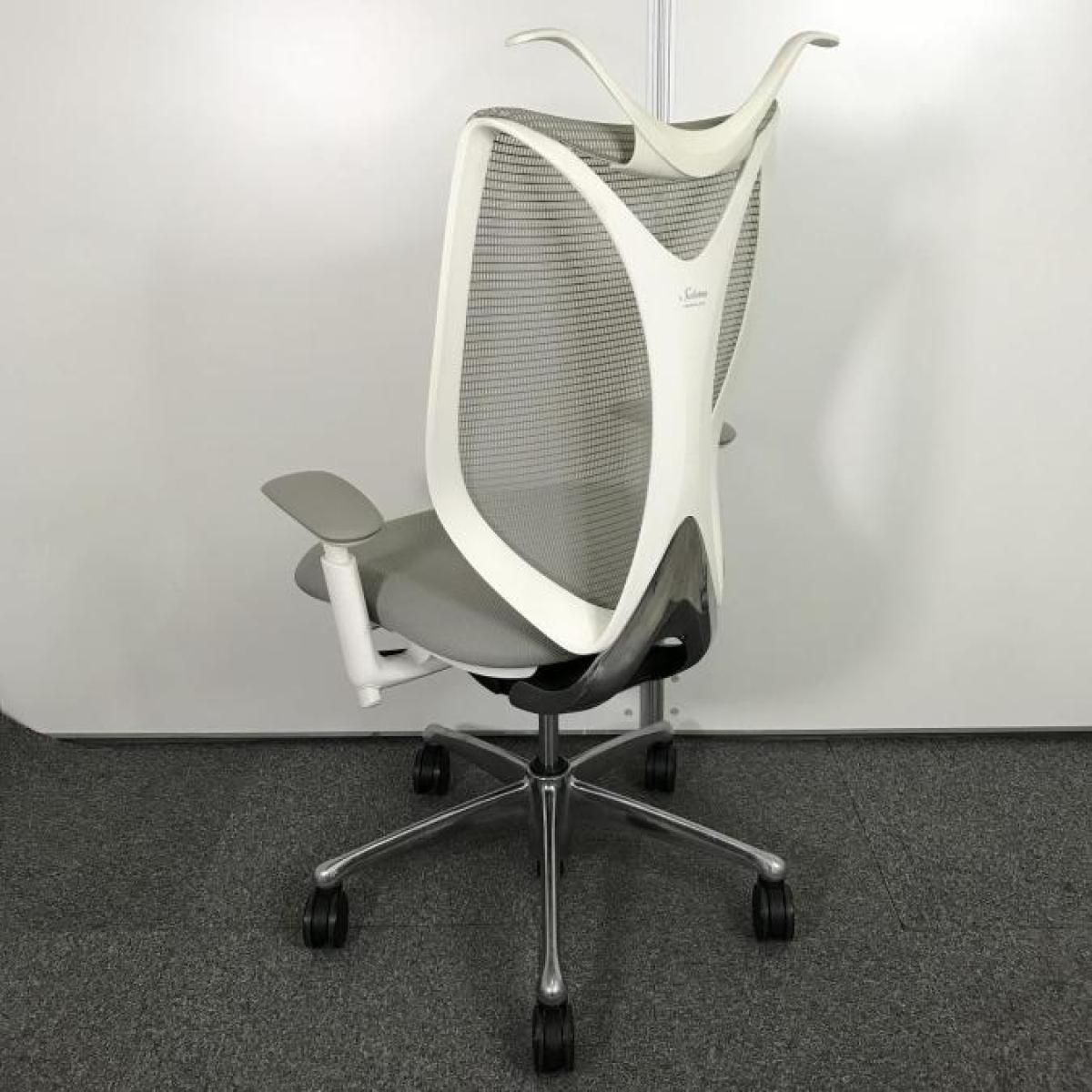 【前傾チルト付!流れるような美しいフォルムの最高級メッシュチェア!】■オカムラ(okamura)製 Sabrina(サブリナ) ハイバック 肘付き ■可動肘 ■背面メッシュ ■ライトグレー × ホワイトフレーム ■ハンガー付き- つくば店