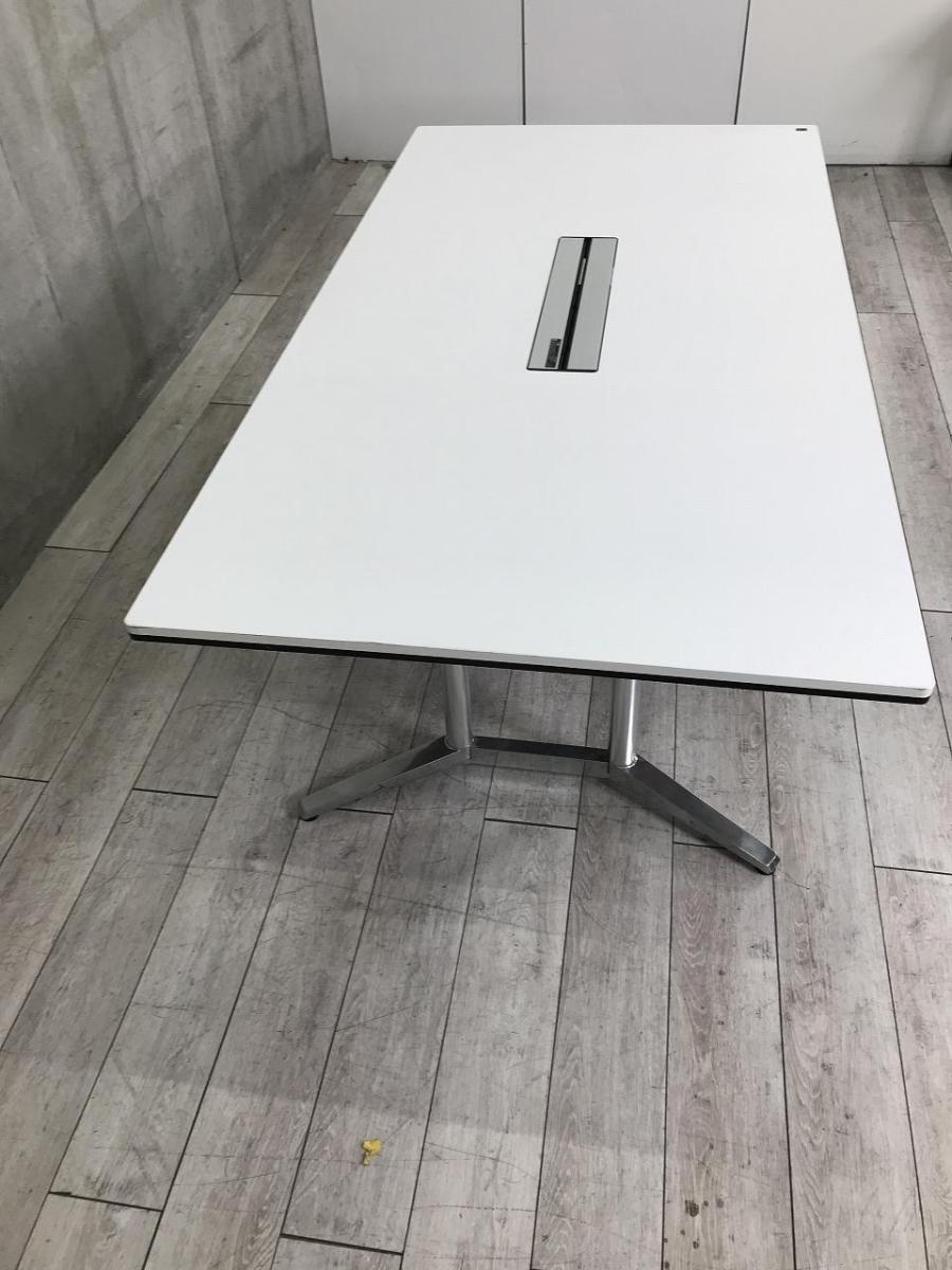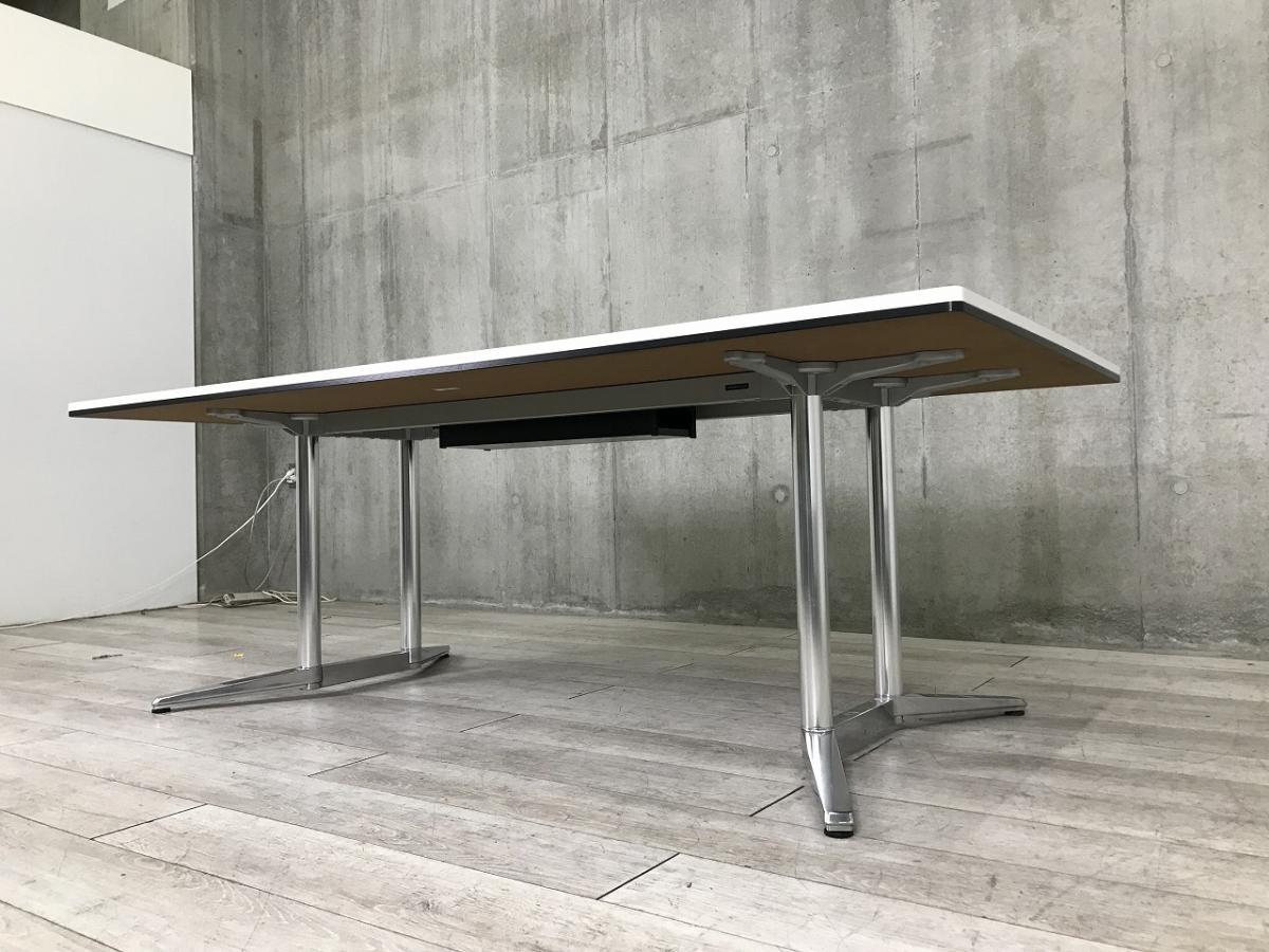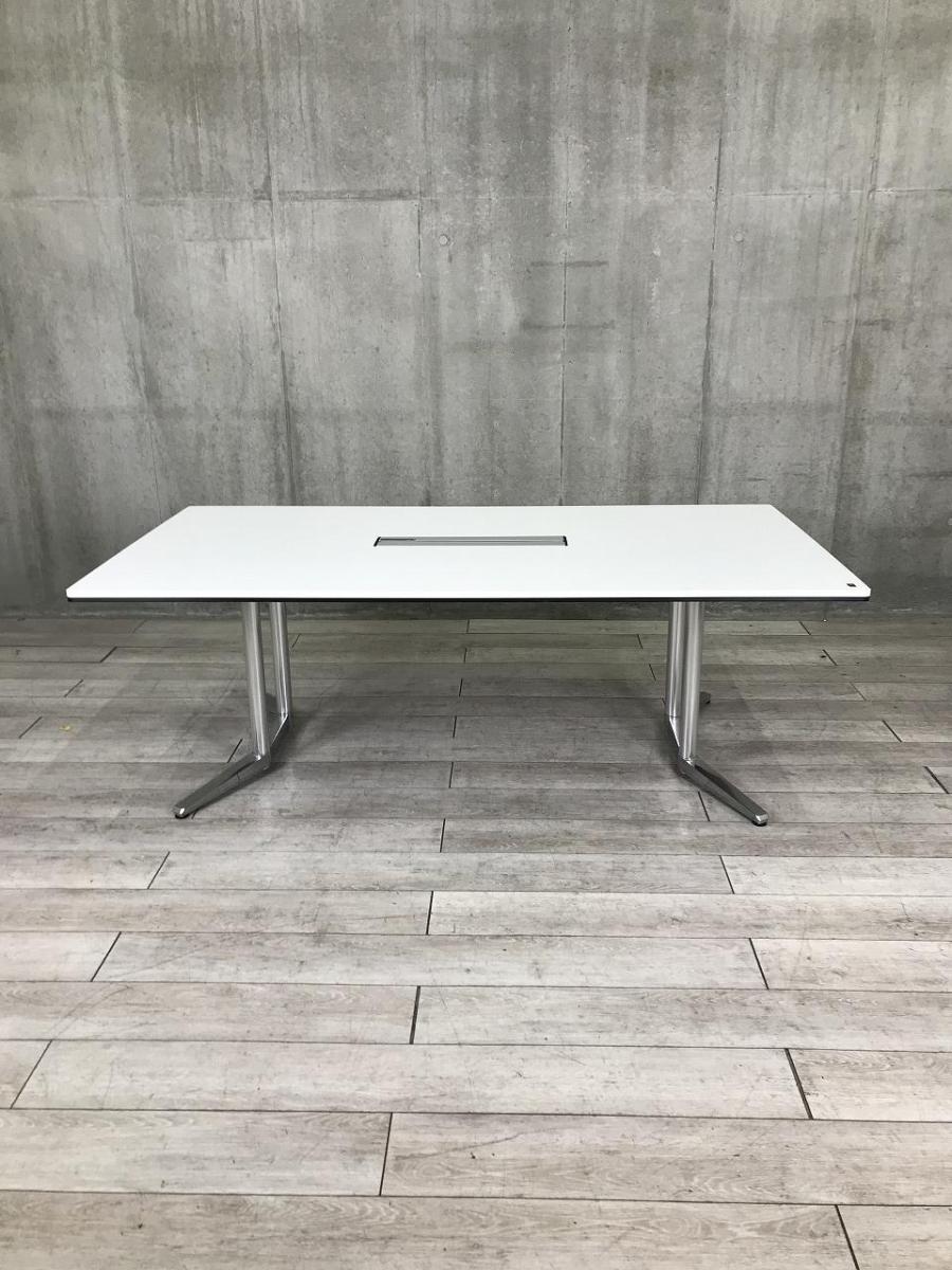 【オカムラ製高級テーブル、ラティオⅡが入荷!人気の高い会議用テーブル!】■オカムラ(okamura)製 ラティオ(RATIO)Ⅱシリーズ ミーティングテーブル 会議用 短形 W2100×D1100㎜ ■配線カバー付 ■ホワイト【入替セールにつき20%OFF!】- つくば店