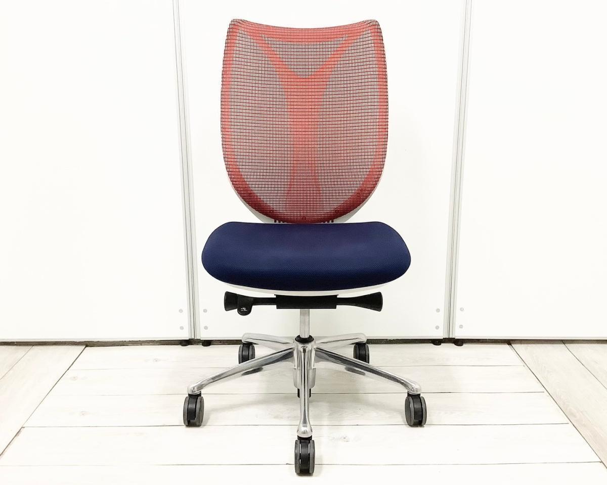 【人間工学から生まれた最先端のワーキングチェア!】■オカムラ サブリナチェア 肘掛け無 背:レッド / 座:ダークブルー ■流れるような美しいフォルム!姿勢に心地よくフィット!【K10】