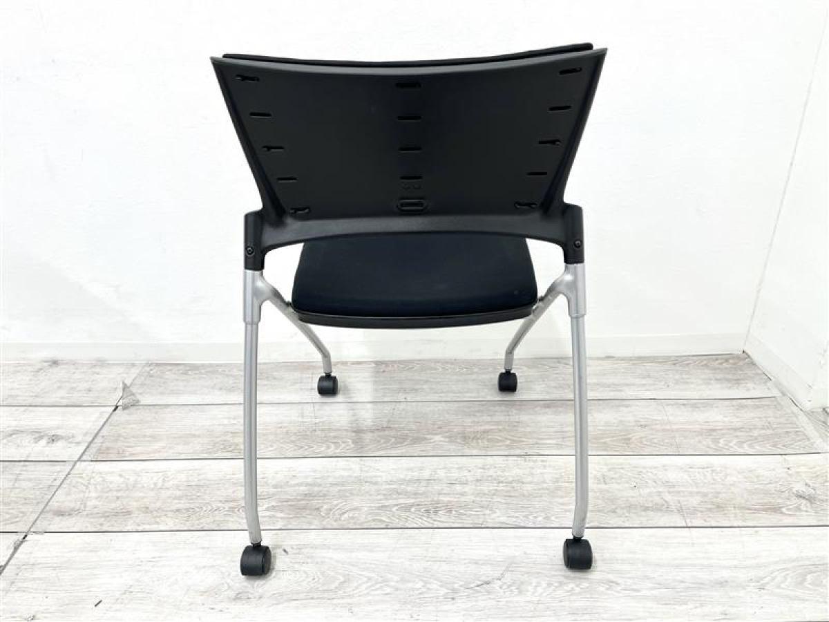 【関西倉庫在庫品】【平行に重ねて省スペース!使い勝手抜群のミーティングチェア!】■イトーキ マノスシリーズ ネスティングチェア 座ブラック 背ホワイト キャスター付【ITOKI Manos】【W】