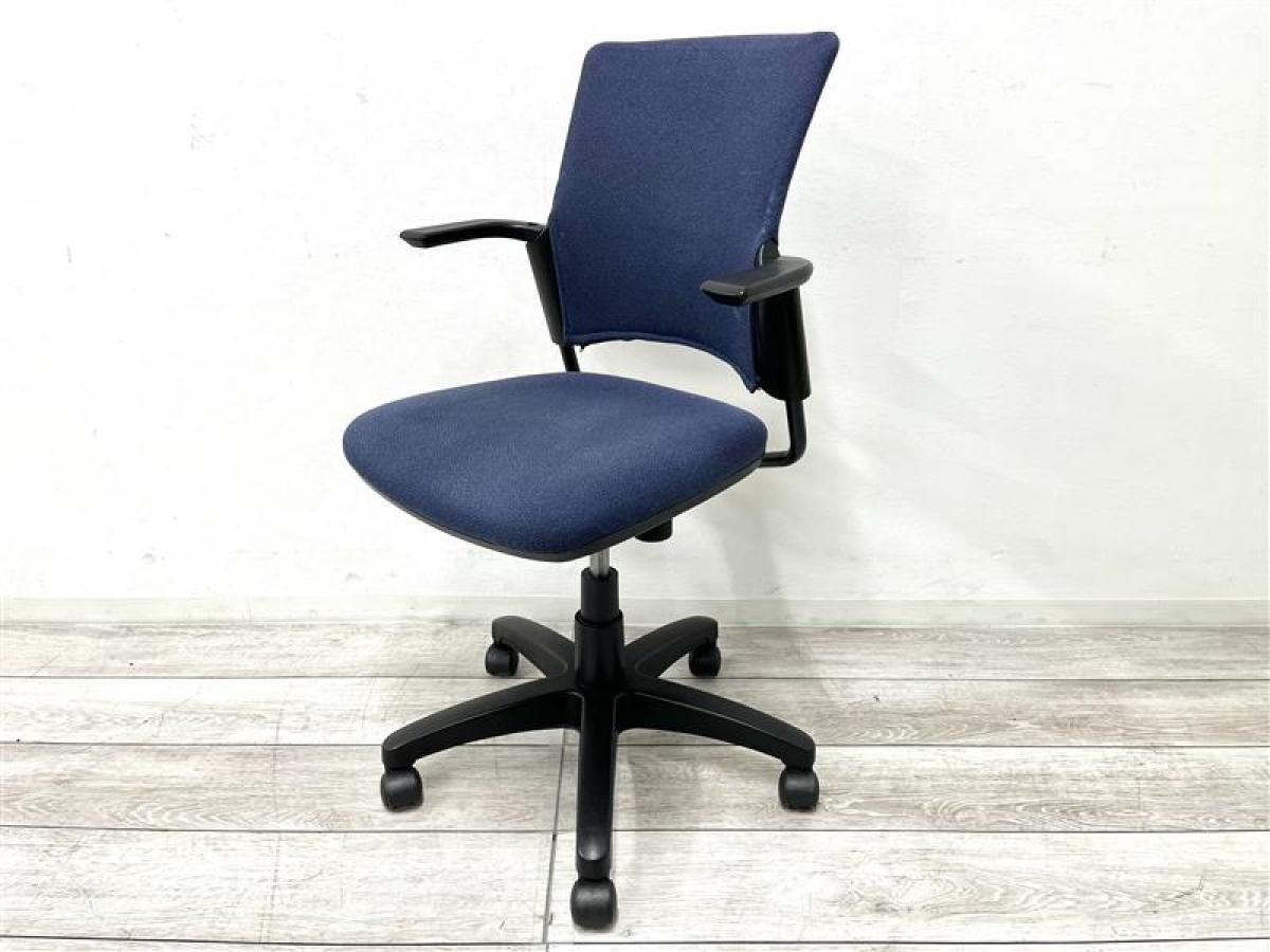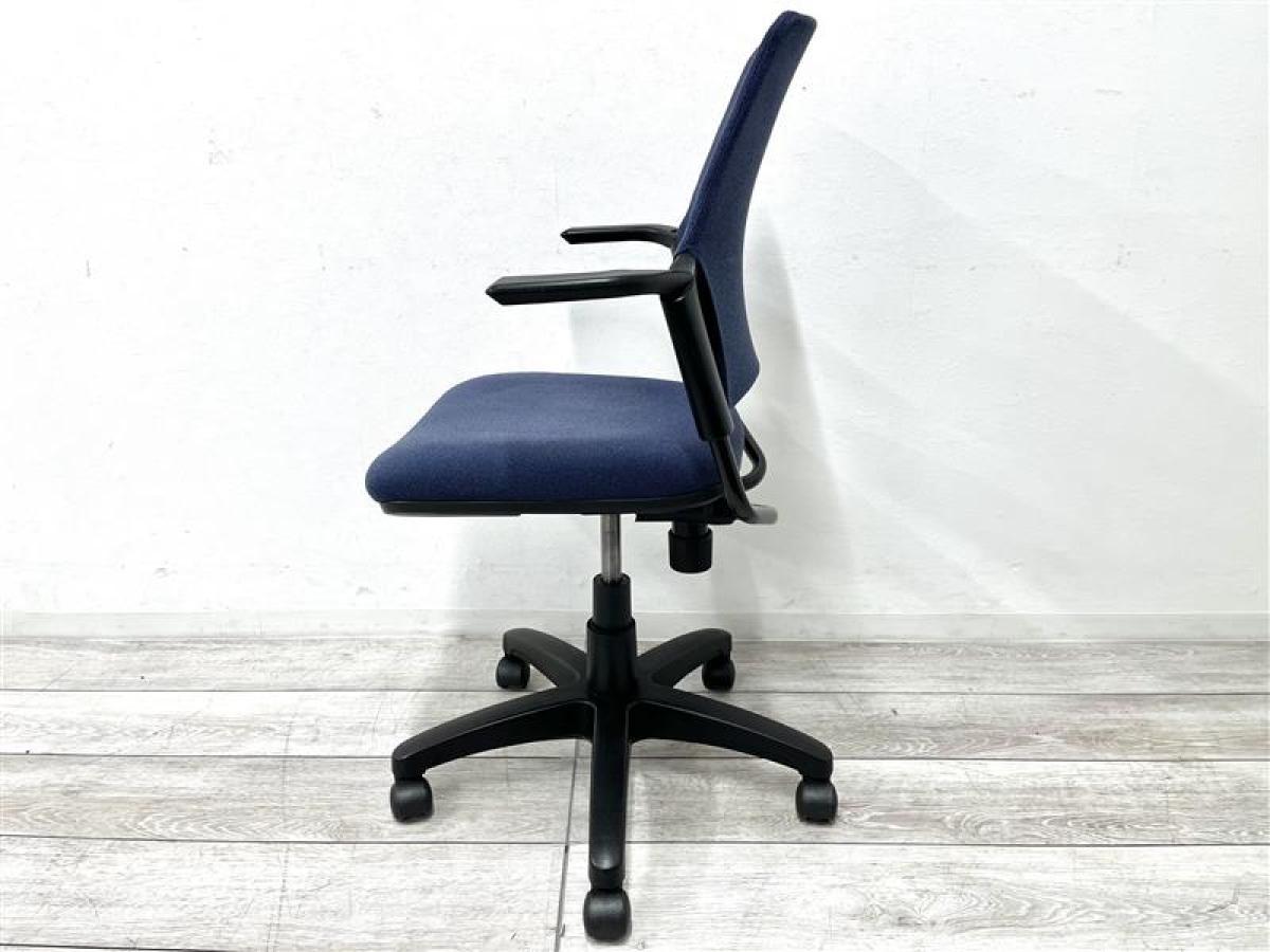 【定価約5万円】【シンプルなデザインでオシャレな肘付OAチェア】■プラス製/チェダーシリーズ ■肘付OAチェア ■固定肘 ■ネイビーブルー- 仙台店