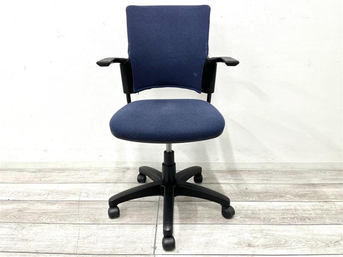 【定価約5万円】【シンプルなデザインでオシャレな肘付OAチェア】■プラス製/チェダーシリーズ ■肘付OAチェア ■固定肘 ■ネイビーブルー- 在庫数