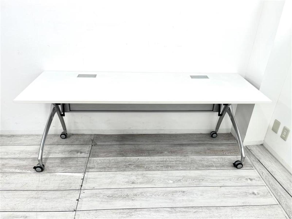 【定価16万円】【配線カバー付き!会議のなどにおすすめ!】■イトーキ/リリッシュ2 ■スタックテーブル ■ホワイト ■配線口あり- 在庫数