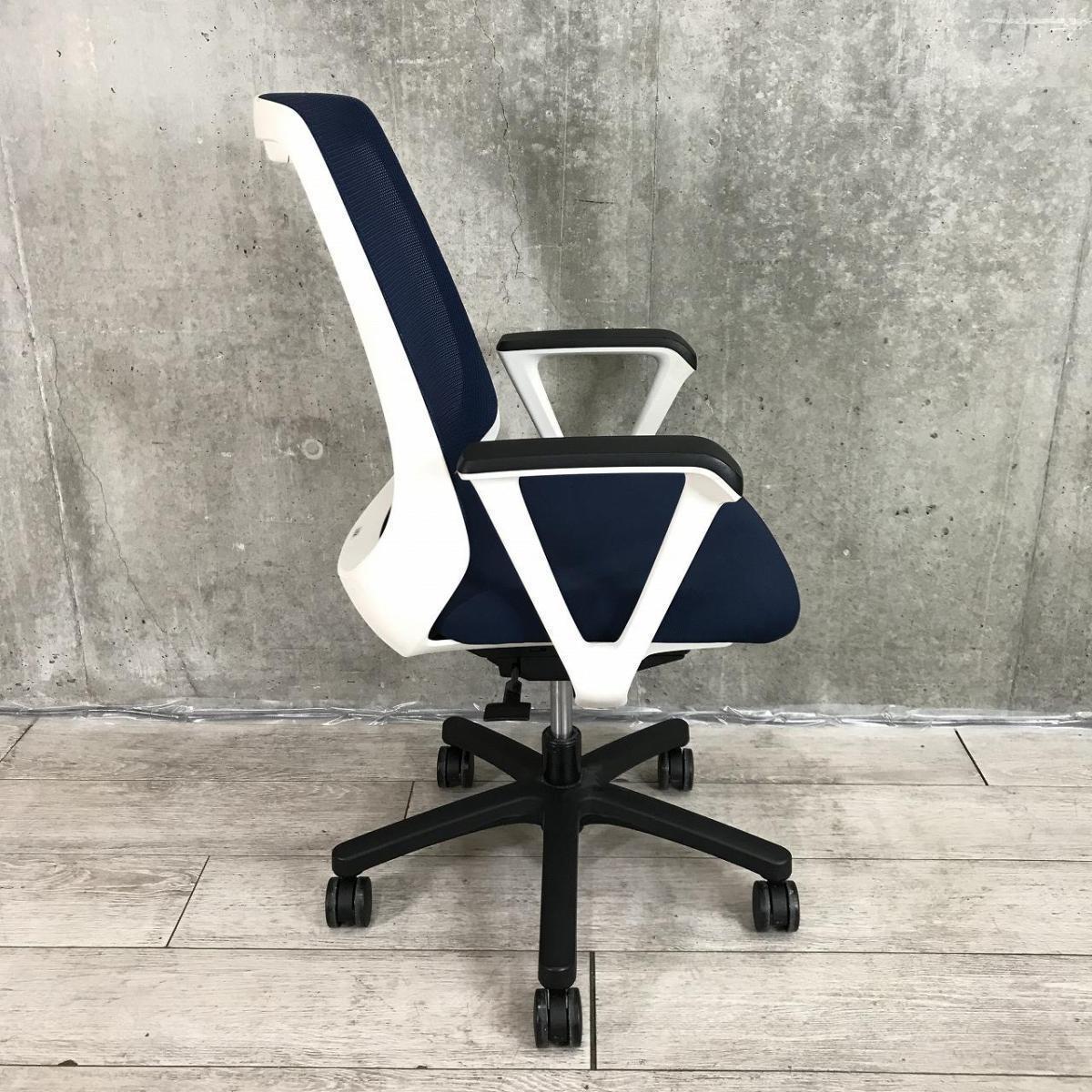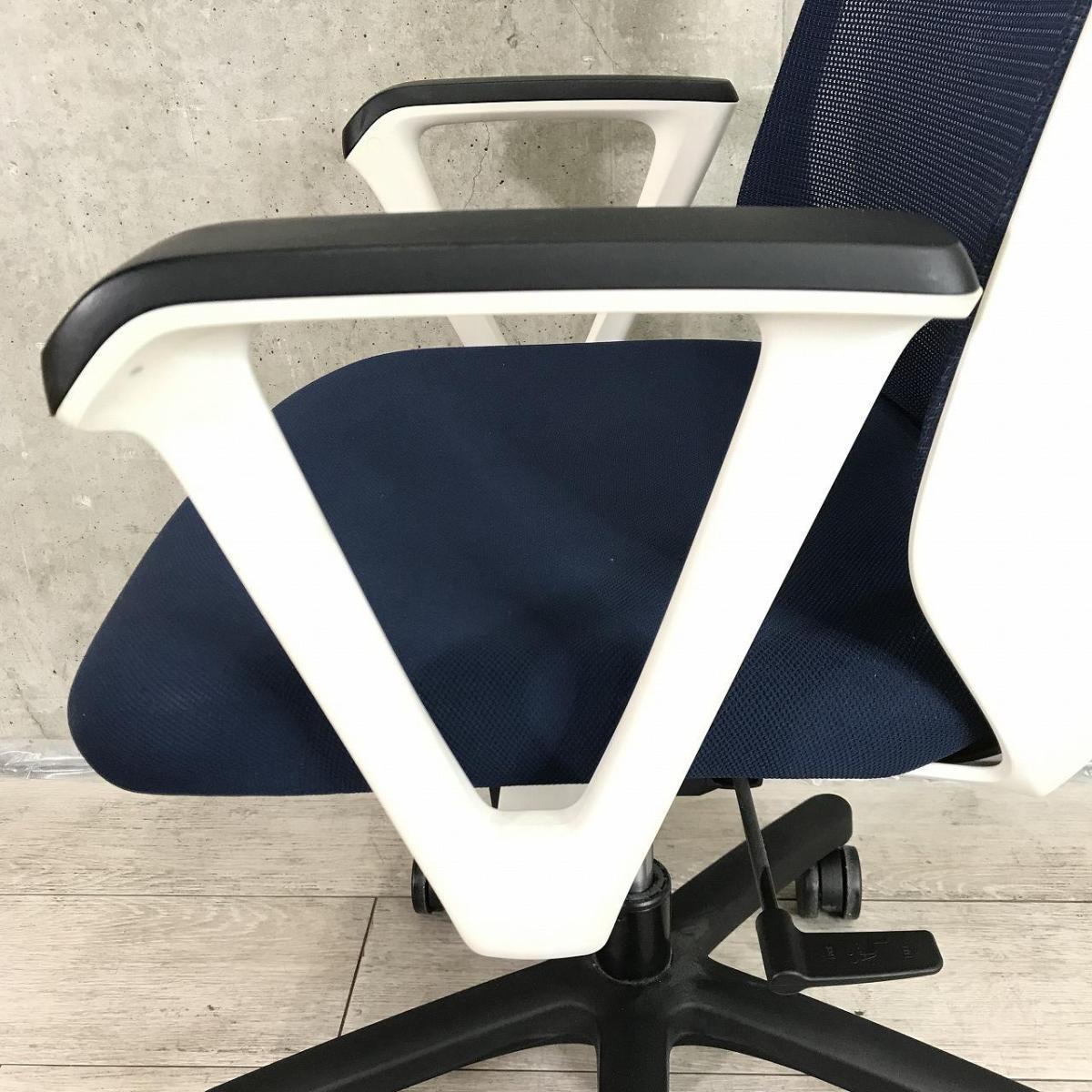理想的な作業姿勢をキープ!定番カラーで通気性も良い背もたれメッシュ!足回りコンパクトで使い勝手抜群! ■イトーキ/ノナ(nona)/ネイビーブルー × ホワイトフレーム ハイバック サークル肘付き- 立川・八王子店
