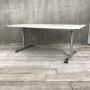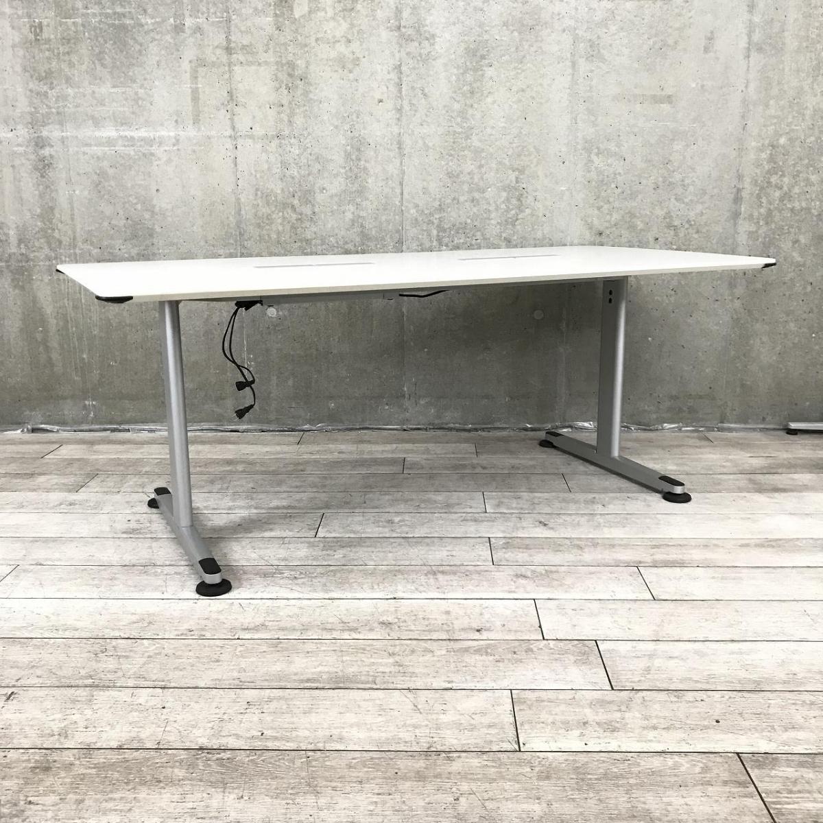 【便利な電源タップ付!ホワイトカラーのシンプルなミーティングテーブル!】■コクヨ(KOKUYO)製 アリーナシリーズ ミーティングテーブル W1500×D740㎜ ■電源タップ2口×4箇所 ■キャスター付 ■ホワイト