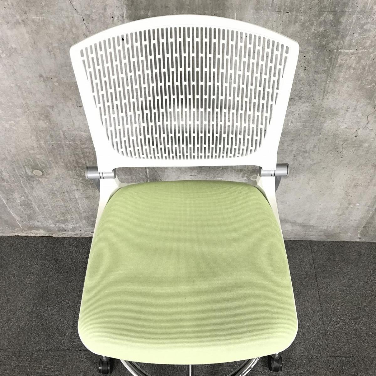 【人気の上下昇降可能なミーティングチェア!背もたれ付で安定の座り心地!】【少し高級感ある会議室にオススメ!】 【オフィスの休憩スペースに!】■オカムラ製 グラータ ミーティンチェア ■グリーン×ホワイトシェル ■5本脚タイプ ■キャスター付 ■背面樹脂メッシュ- 大阪・堺店