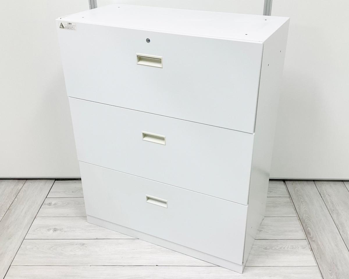 【新品】【メーカー在庫品】ウチダ 製 BEストレージ ホワイト 高さ1100サイズ シリンダー オフィス書類をたっぷり収納 3段ラテラル書庫!!【店舗展示品アリ!】