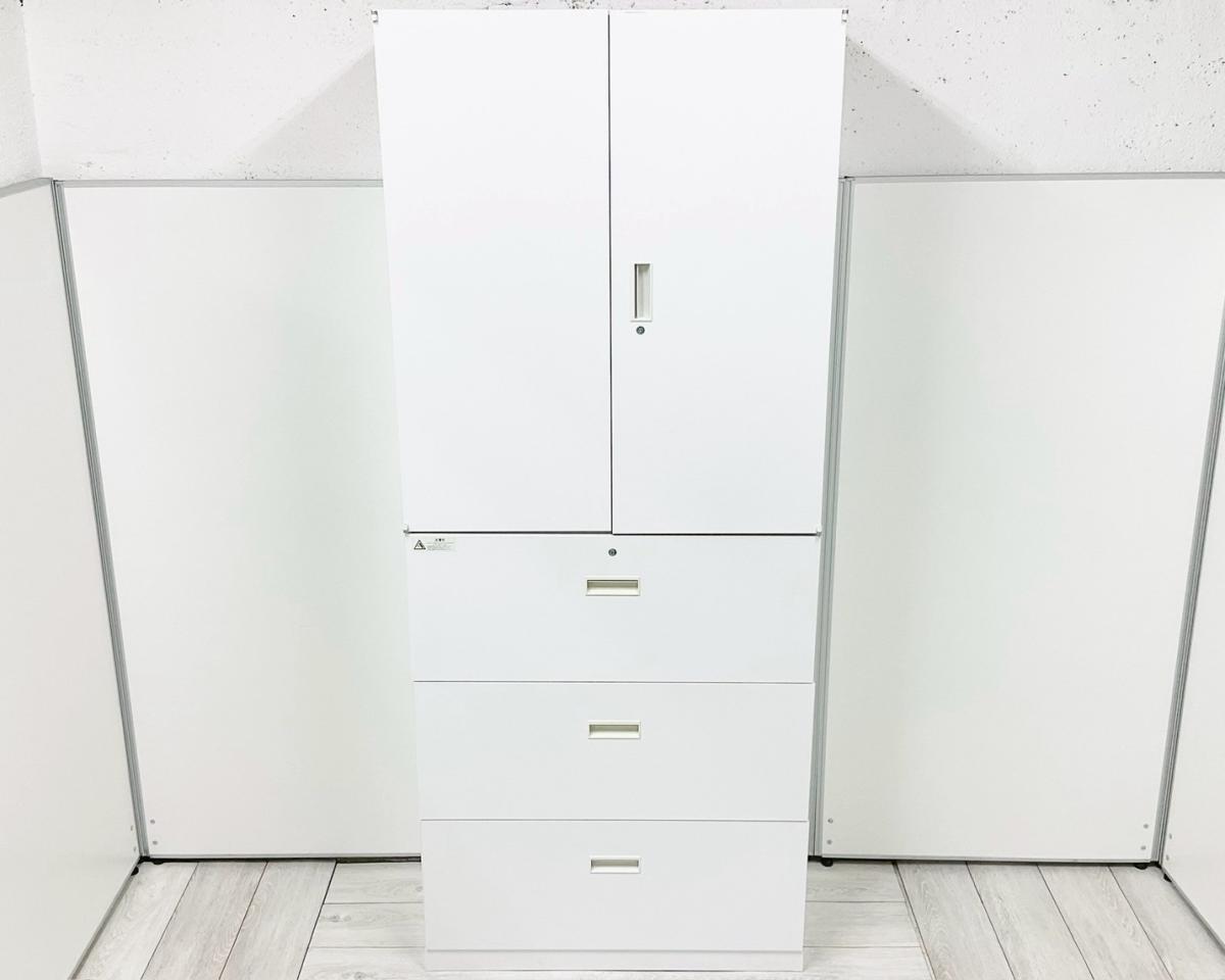 ★【新品】【メーカー在庫品】ウチダ 製 BEストレージ ホワイト 高さ2150サイズ シリンダー オフィス書類をたっぷり収納できる、人気の書庫セット 両開き+3段ラテラル 上下書庫セット!オフィスバスターズ 梅田本店