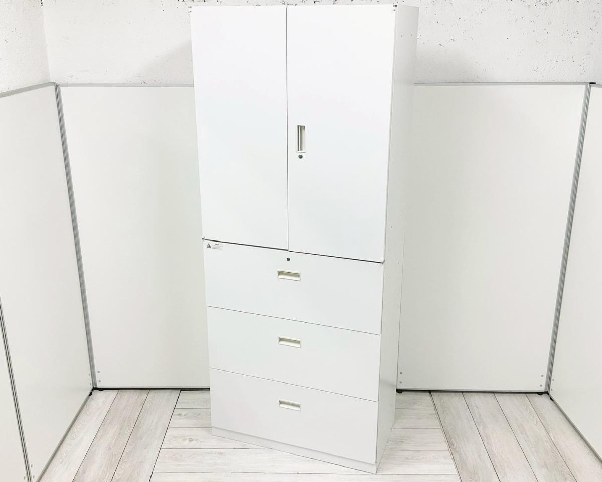 ★【新品】【メーカー在庫品】ウチダ 製 BEストレージ ホワイト 高さ2150サイズ シリンダー オフィス書類をたっぷり収納できる、人気の書庫セット 両開き+3段ラテラル 上下書庫セット!!オフィスバスターズ心斎橋店