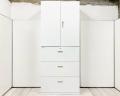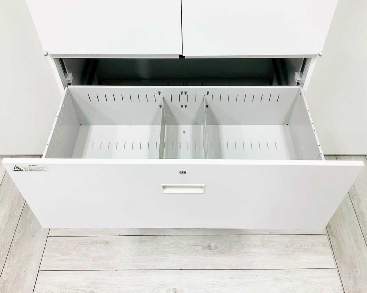 上段が両開き(観音開き)、下段が3段ラテラル(引き出し)書類整理や出し入れに最適な組合せ。