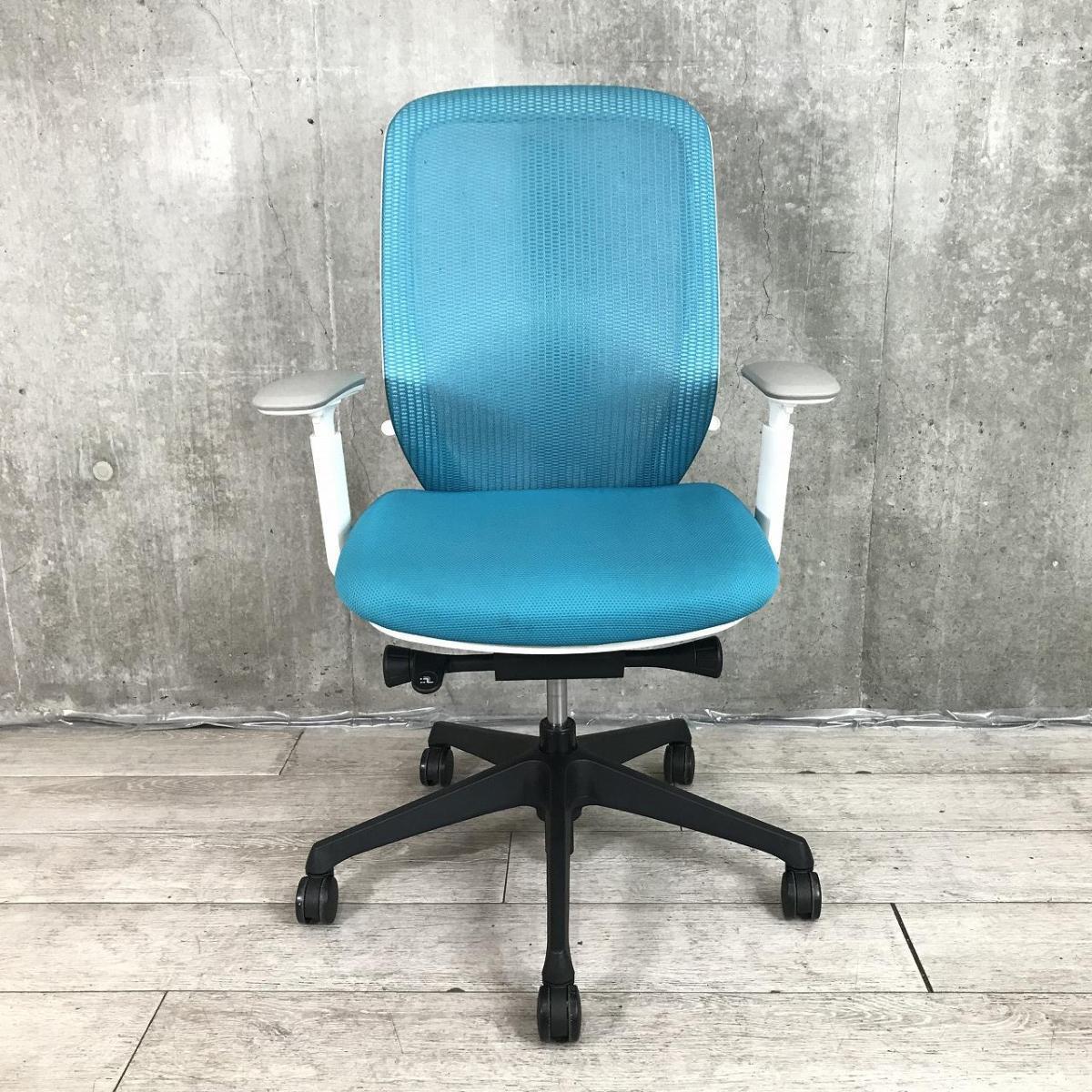 【新品ヘッドレスト交換済み】オカムラ/シルフィー/ブルー/可動肘