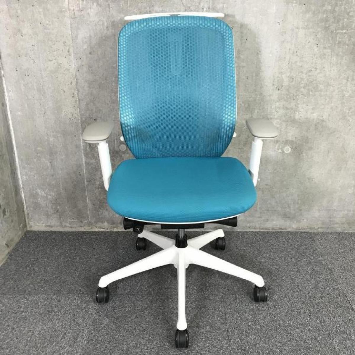 《現物写真だから安心!》オカムラ製の人気オフィスチェア【シルフィーメッシュ/可動肘/ヘッドレスト付き/ブルーグリーン】が先着1名様ご案内可能です!
