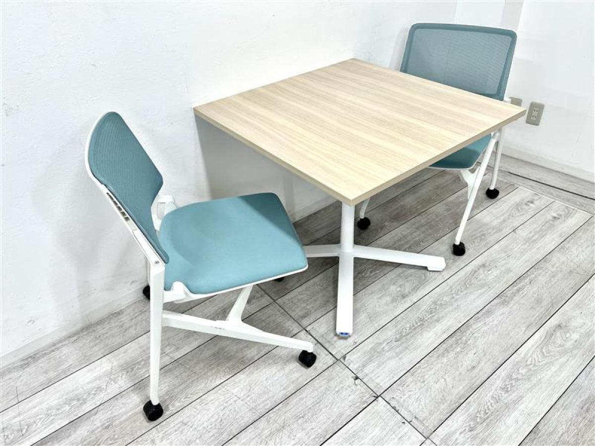 コクヨ製ビエナシリーズの角テーブルとオカムラ製のマルカシリーズネスティングチェアのセット!