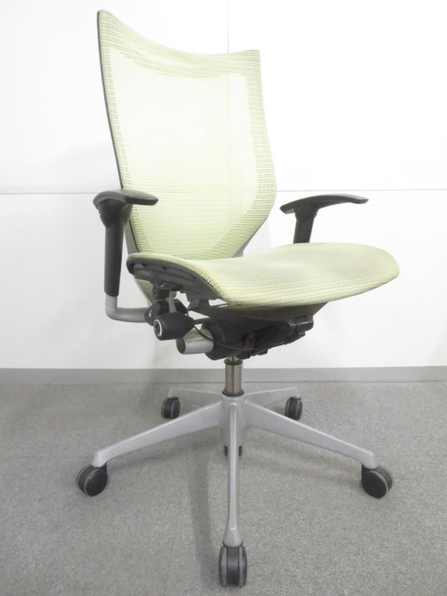 【おつとめ品】■オカムラ製 バロンチェア 可動肘付 ピスタチオグリーン ■※座面色あせ・色移り・汚れあり【見た目を気にしなければお買い得】サーキュラーバリューCO2削減量の算出について