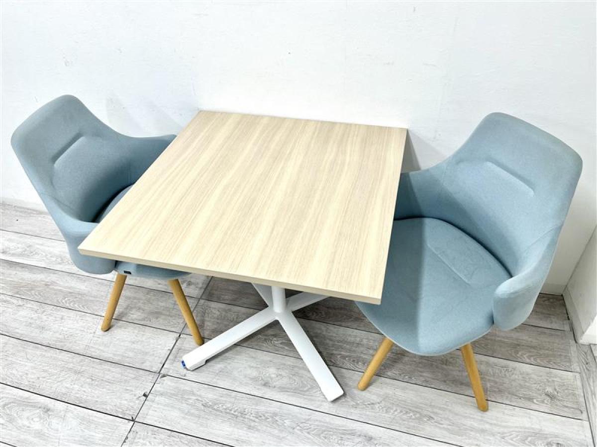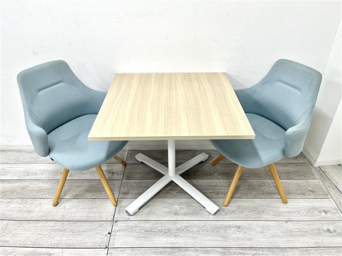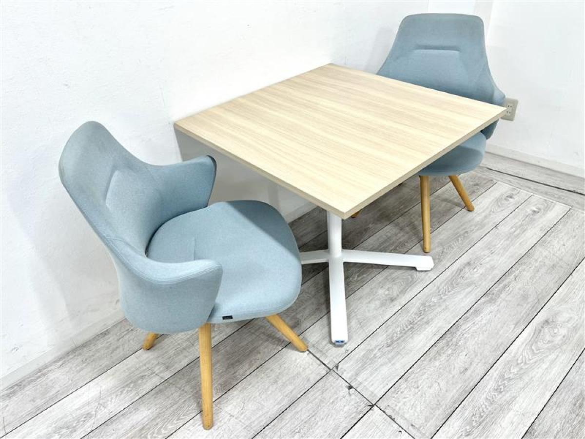 【セット商品】【定価約20万円以上】【木目天板の角テーブルとミーティングチェアのセット!】■コクヨ/ビエナ ■ナチュラル天板/ホワイト脚 ■角テーブル キャスター付き ■休憩室・リフレッシュルーム ■オカムラ/ライブス ■肘付ミーティングチェア ライトブルー ■木製脚 ※セット商品のため配送料は要相談になります。在庫がある店舗一覧