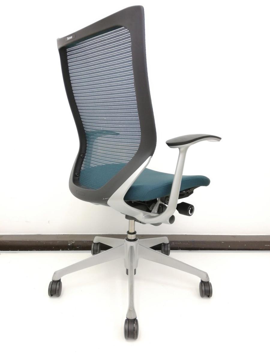 発売当時、既に人気を博していたオカムラの高級チェア、コンテッサから手元で座高調整ができるスマートオペレーション機能を取り除くなどしてリーズナブルにしたのがバロンです。その際に少しだけコンパクト化されました。そのことが、日本人の体格、日本のオフィス、家庭環境に適し、国内で多くのシェアを獲得する要因の一つになったのではないかと思います。