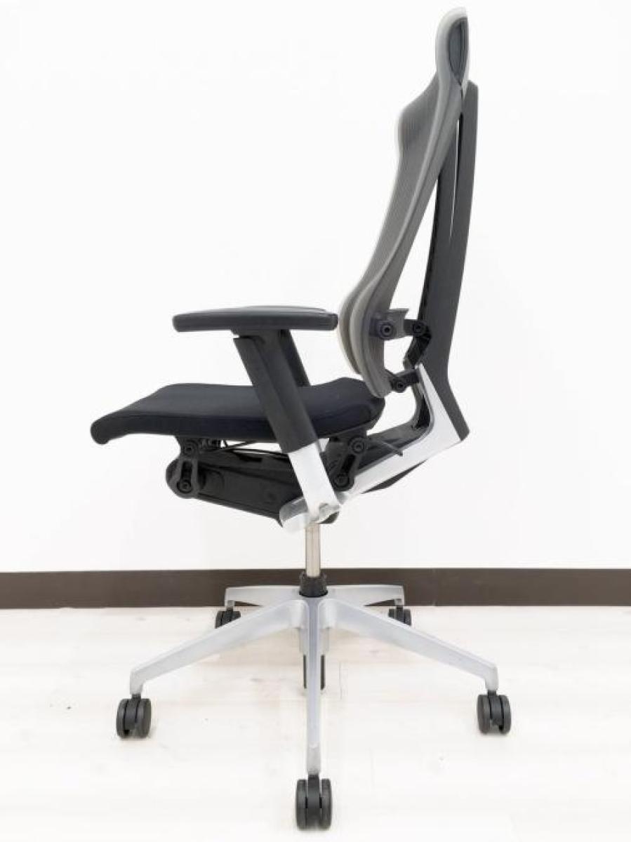 一番の特長は、着座時にチェアがピタっと体にフィットしてくれることです。 人がチェアの座り心地を調節するのではなく、チェアが人に合わせて動くのです!着座時に座面が沈み込みながら後方へスライドし、それと同時に背もたれの腰部分が前にせり出し、「ずっと座っていたくなる」と言われるほどの座り心地に調節してくれます。それを実現しているのが、A.L.S(アクティブ・ランバー・サポート)機構とP.S.S(パッシブ・スライド・シート)機構です。 さらに、背もたれにかかる体圧を徹底的に分析して作られた絶妙なカーブが、常に腰をサポートしつつ背骨のラインに沿ってくれます。