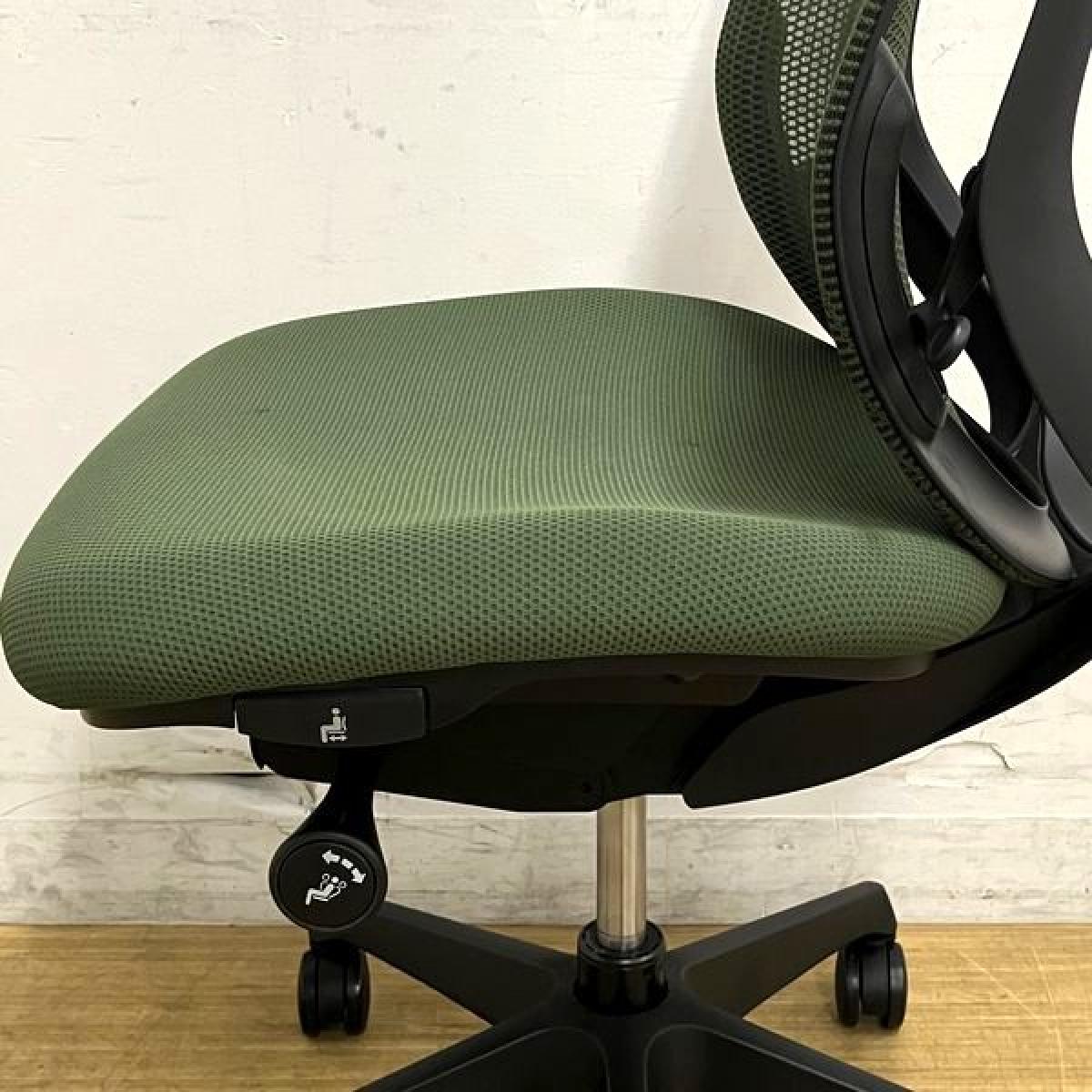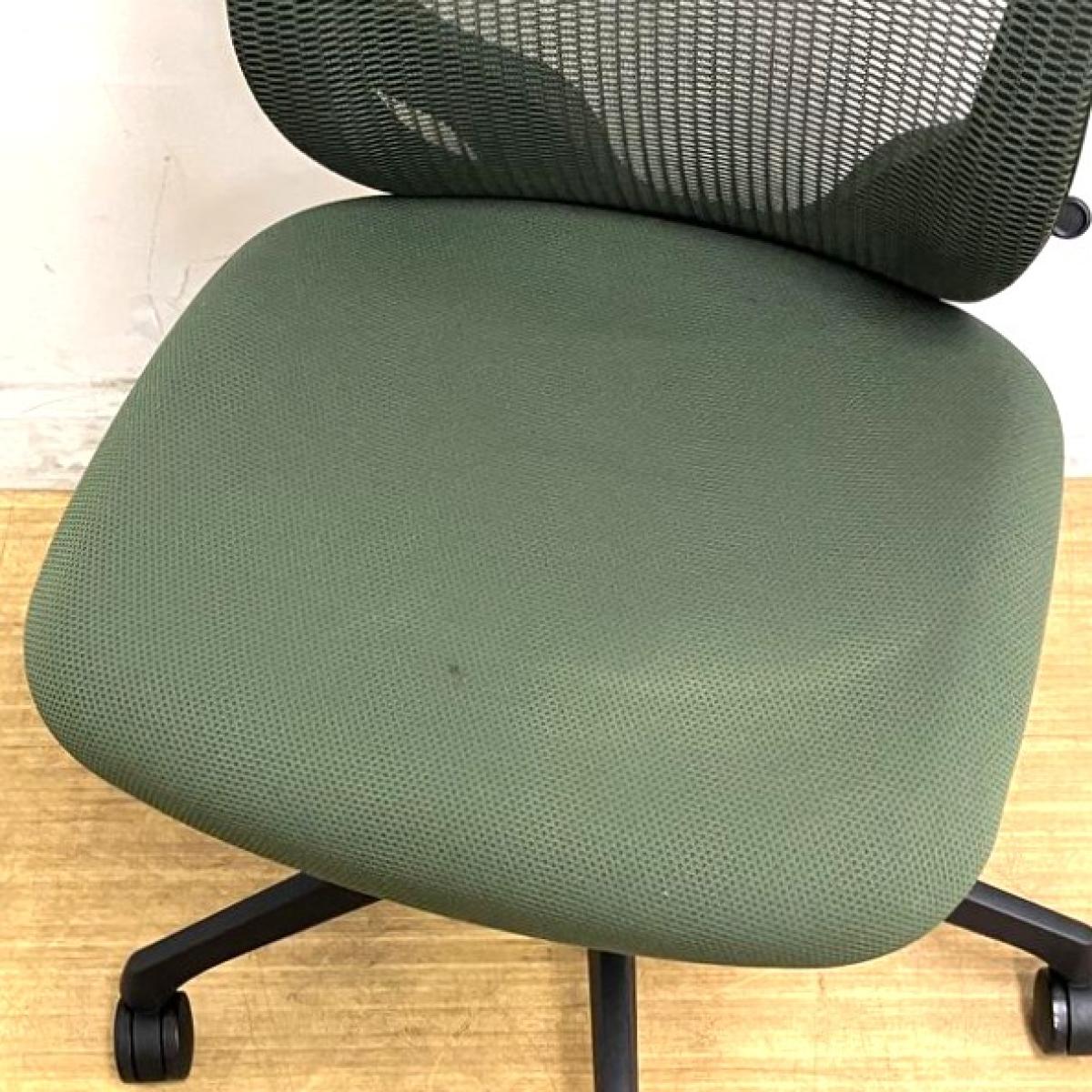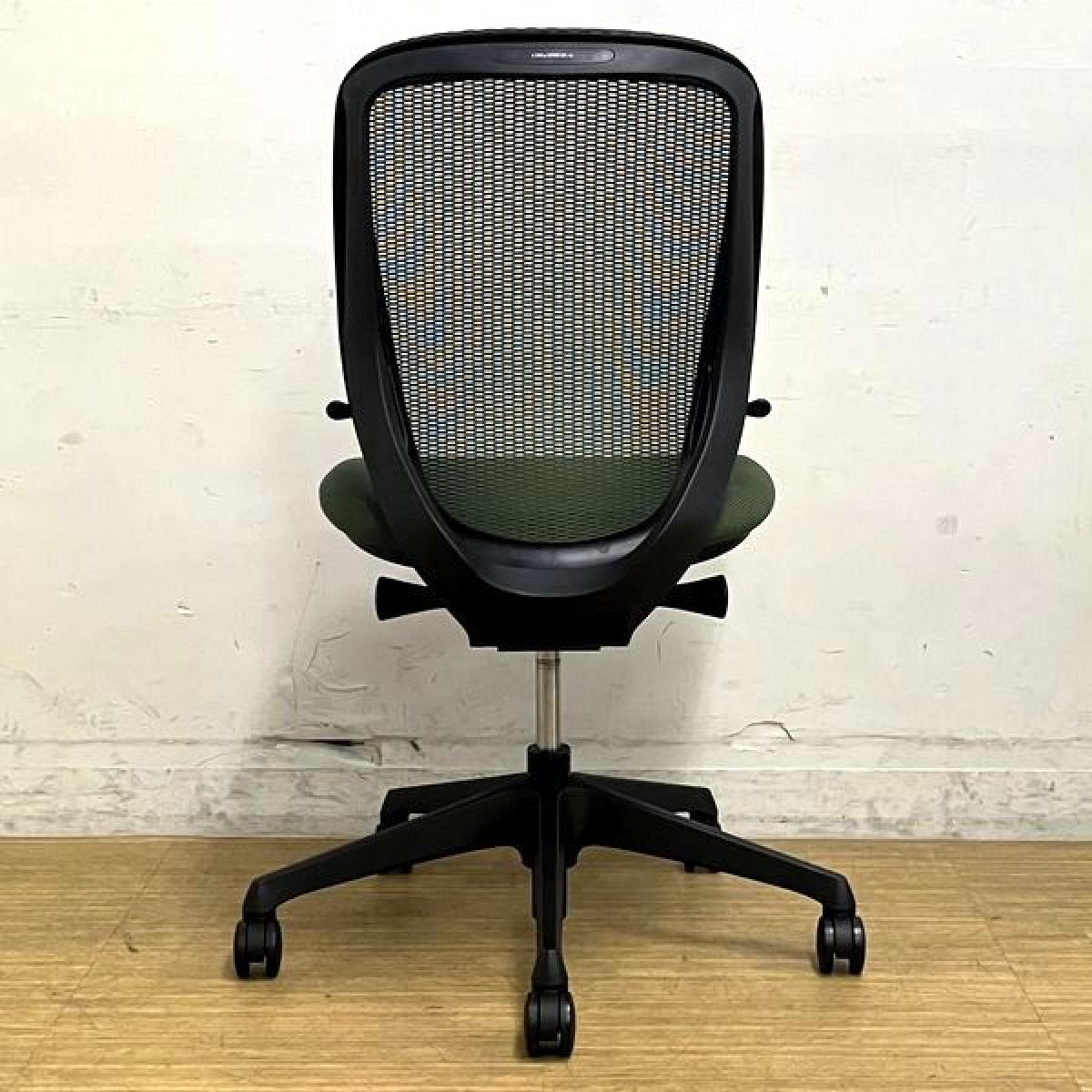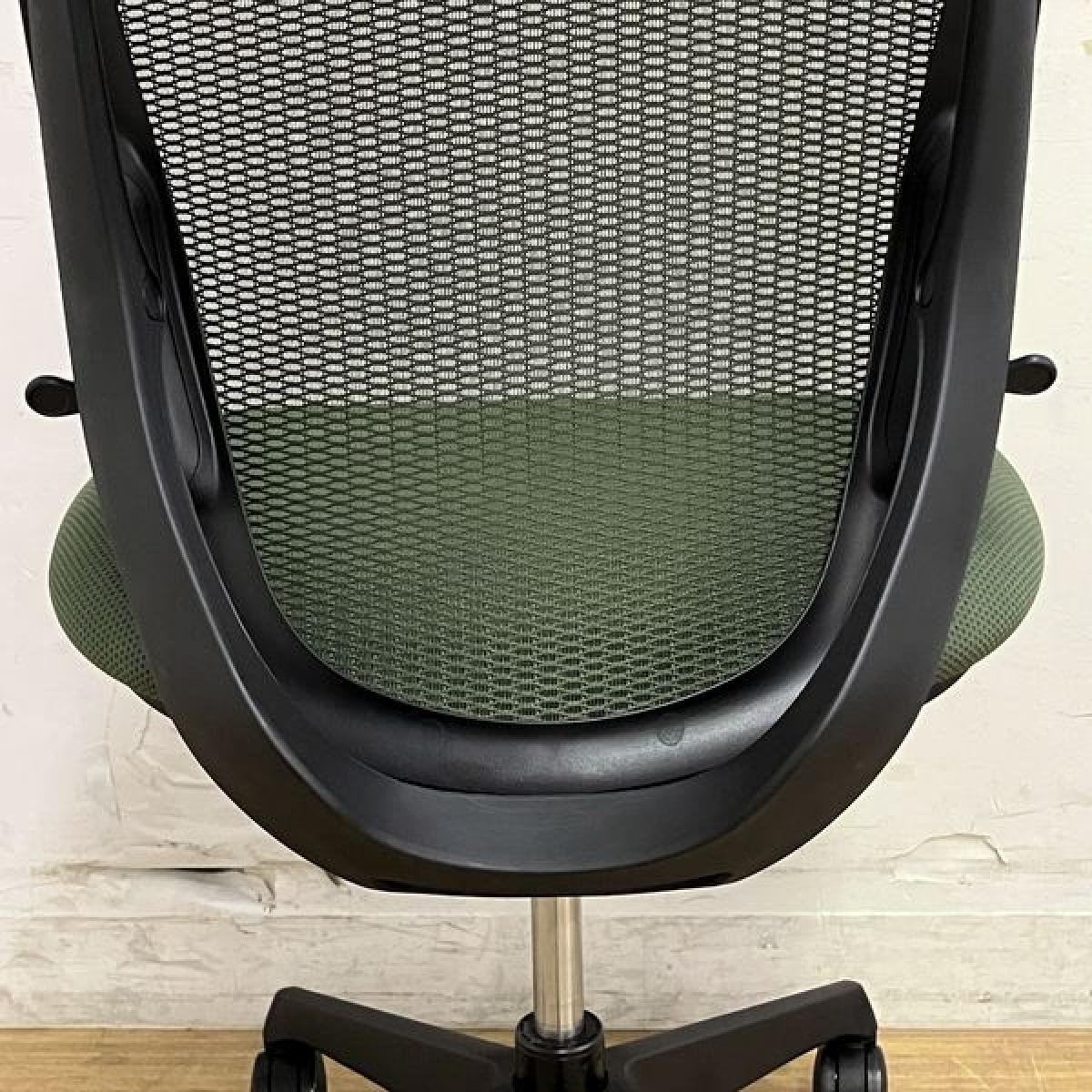 【シミありのため特価】オカムラ シルフィー ローバック メッシュタイプ 肘無しモデル ダークグリーン×ブラックフレーム ブラック樹脂脚 前傾機能搭載の人気モデル- 名古屋千種店