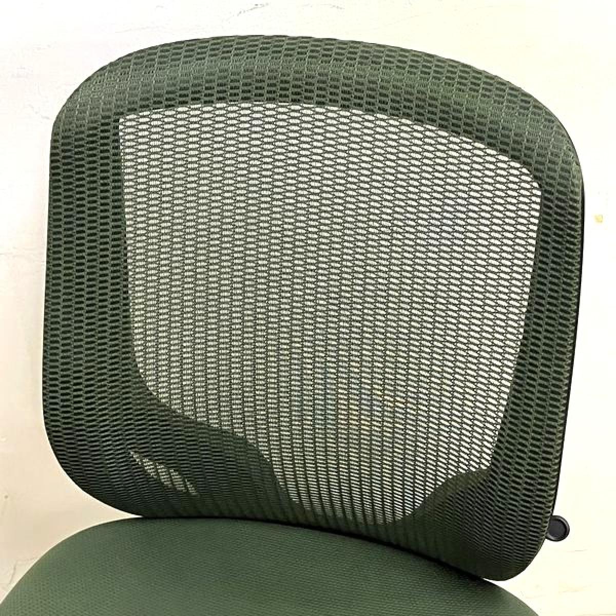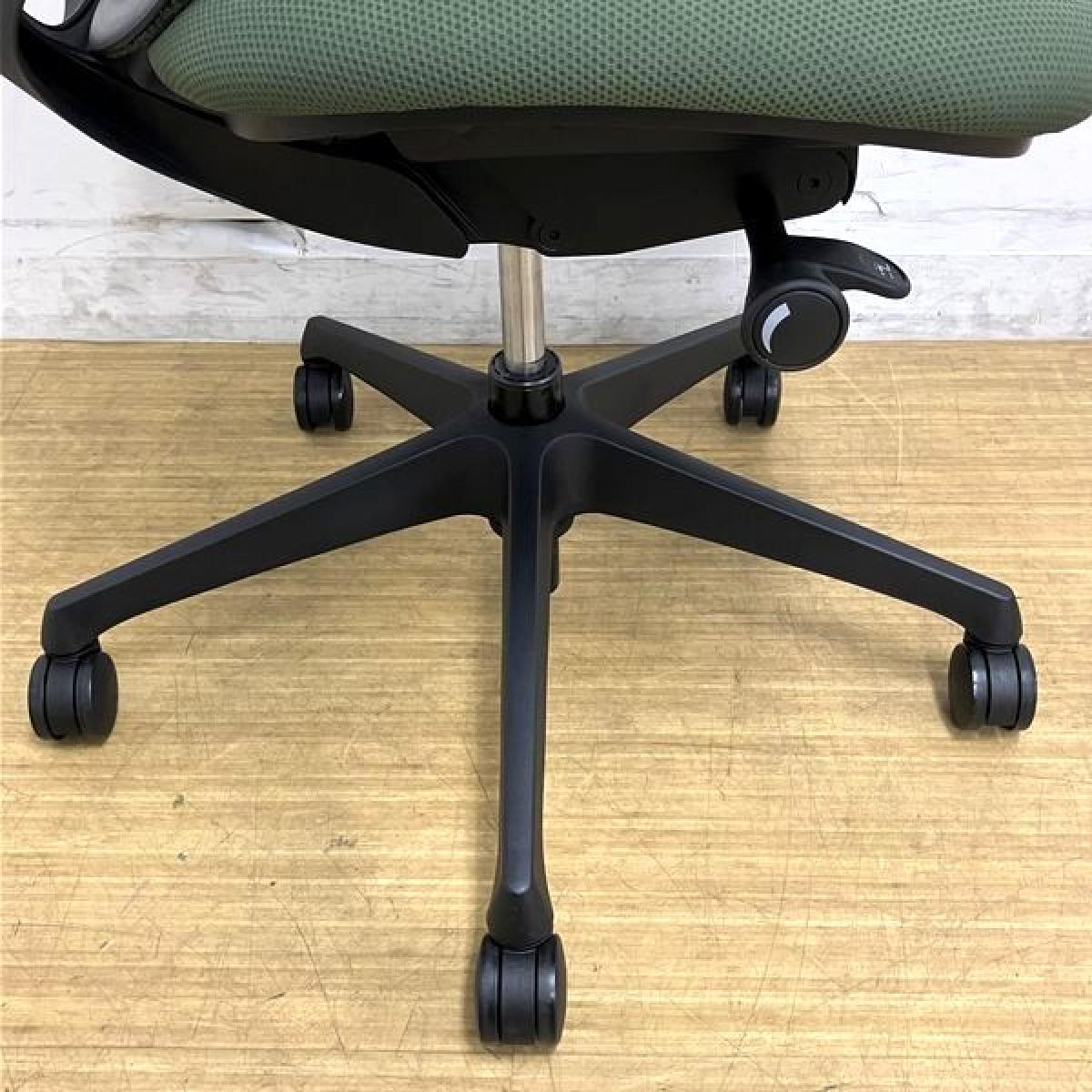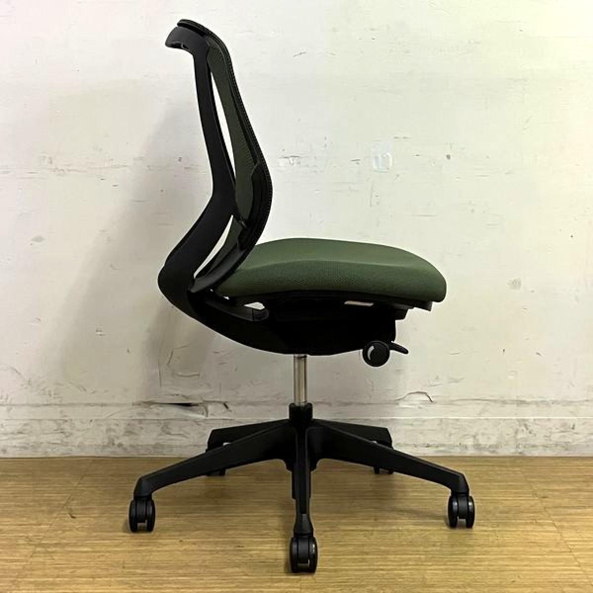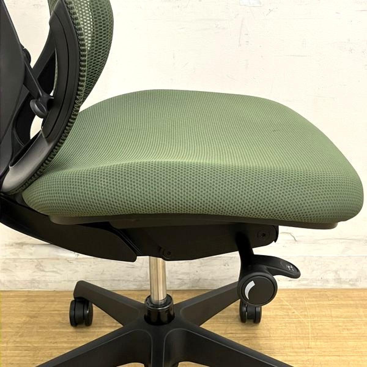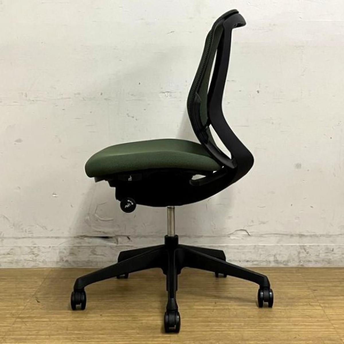 【シミありのため特価】オカムラ シルフィー ローバック メッシュタイプ 肘無しモデル ダークグリーン×ブラックフレーム ブラック樹脂脚 前傾機能搭載の人気モデル- 名古屋千種店