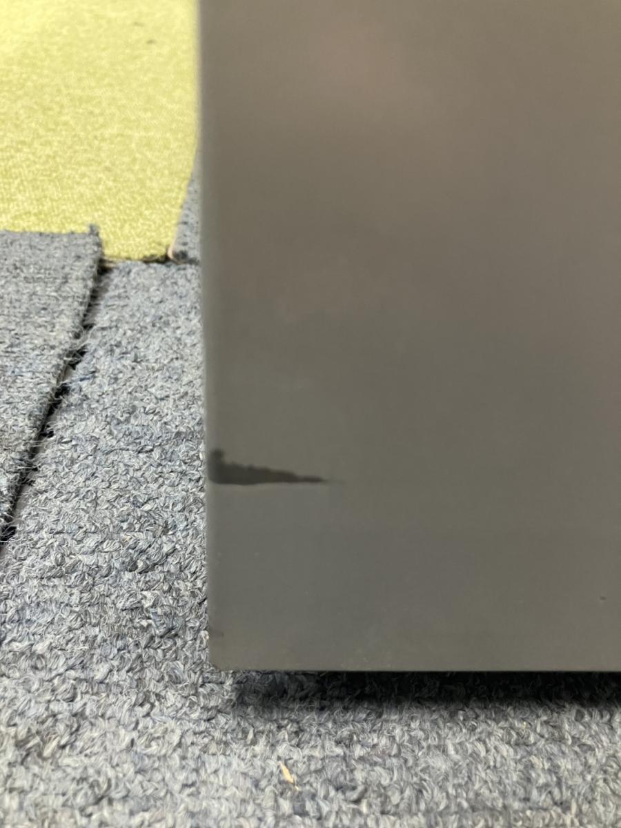 - 目立つ箇所あり傷・凹みが多数、深い傷・凹みが一部ある。(例、天板、正面、背後、サイド部分にある。)