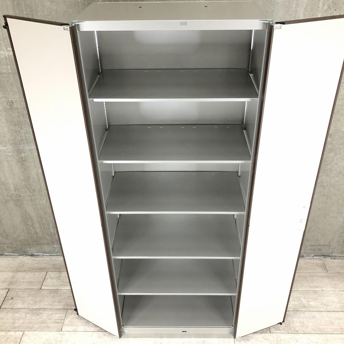 【在庫入替セール品!(本在庫限定価格)】☆今がチャンス!【フォーマルな空間にもフィット!スタイリッシュな木目扉タイプ!】■イトーキ製 両開き書庫 ブラウン H2140mm ※棚板4枚(5段収納) ■大容量!たっぷり6段収納できます!【ハイキャビネット】- 川崎店