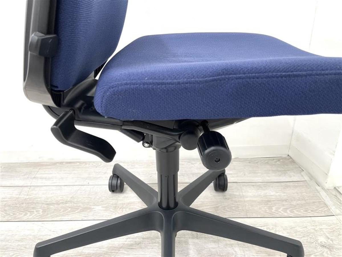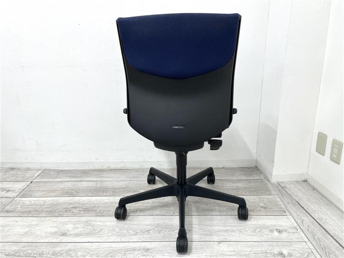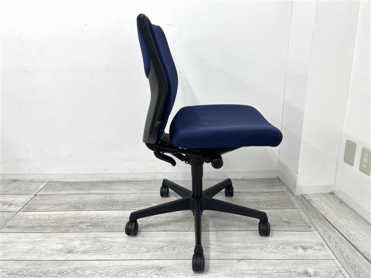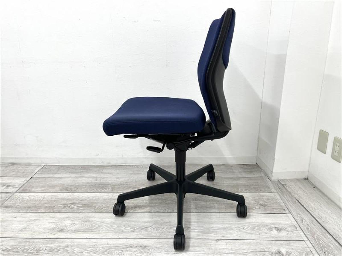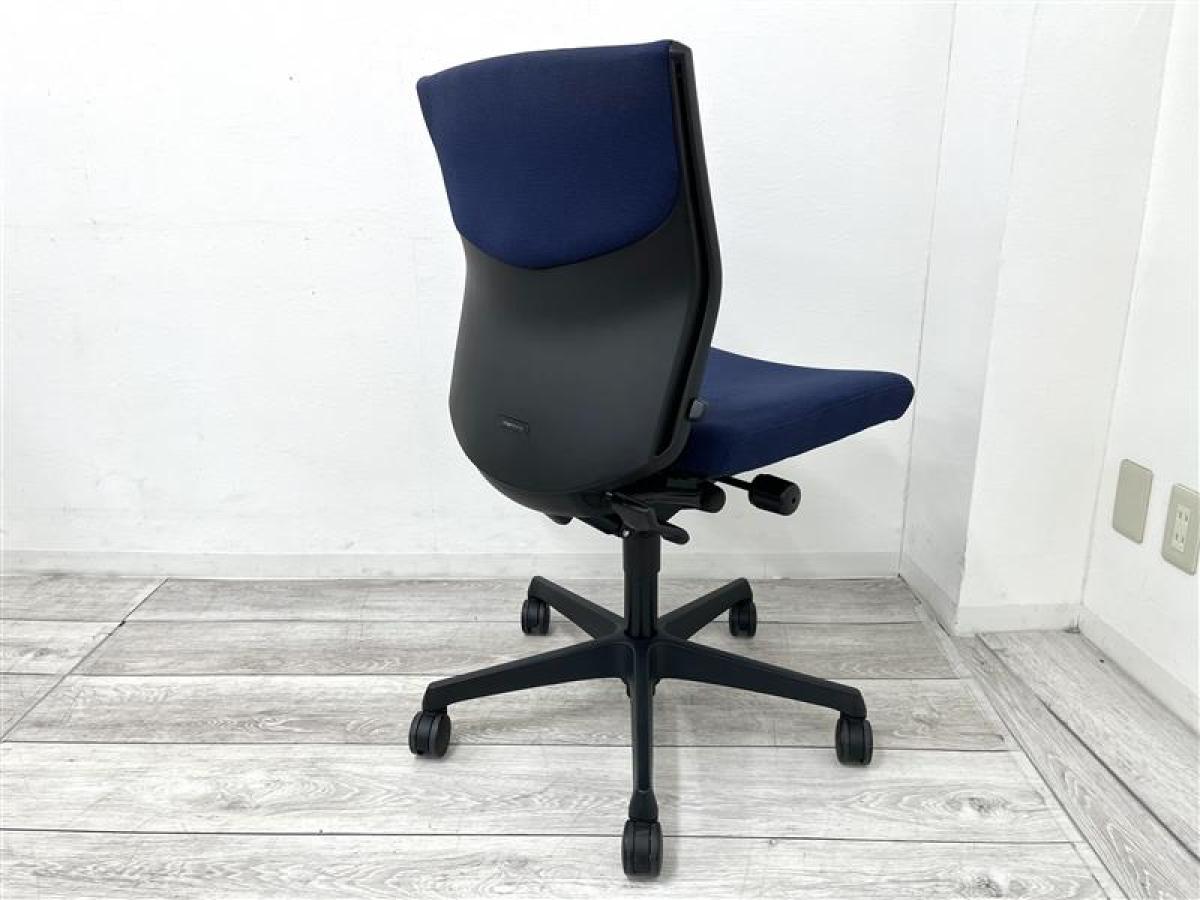 【長時間のデスクワークもランバーが快適にサポート!】■okamura(オカムラ)製 エスクードチェア ローバック 色:ダークブルー 肘無し