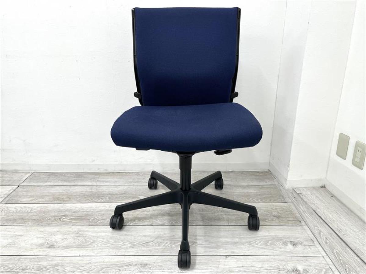 【在庫入替セール品】長時間のデスクワークもランバーが快適にサポート!】■okamura(オカムラ)製 エスクードチェア ローバック ■肘無 ■色:ダークブルー【弊社使用欄:A01030477】