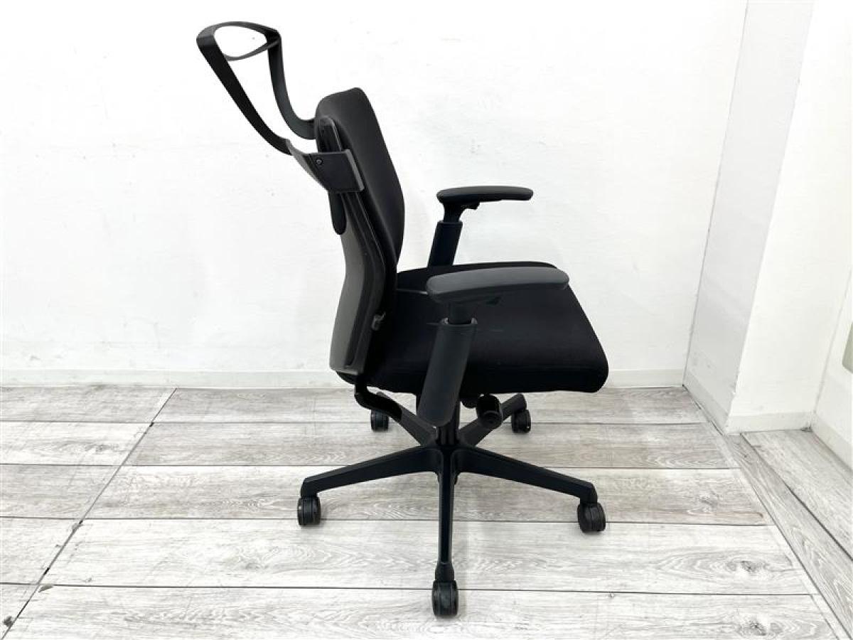 オカムラ エスクード ローバックモデル クッションタイプ デザインアーム付き ブラック×ブラックフレーム ランバーサポート搭載で安定感のある機能面と座り心地