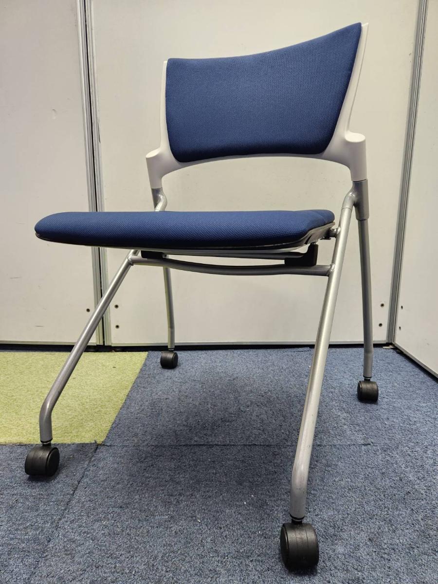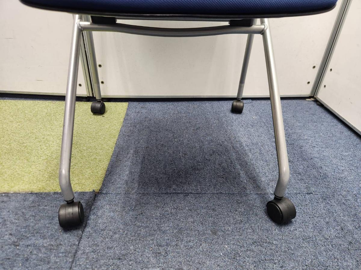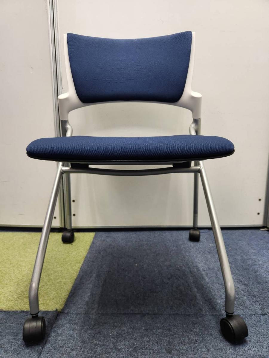 【キャスター付でスイスイ動かせる!省スペースで収納可能!会議や研修にオススメ!】■イトーキ製 マノス(MANOSS) ネスティングチェア 背面パッド無し ■ストロングブルー ■オフィスバスターズ東大阪店 【W】