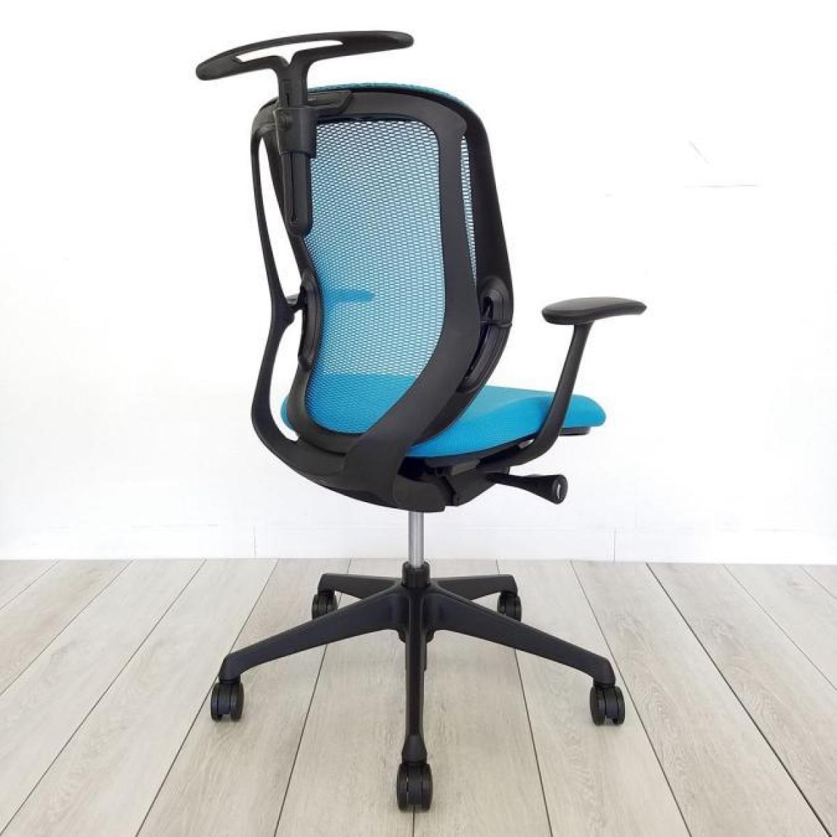 【まるで手を添えて包み込まれるような優しい座り心地!】■オカムラ製 シルフィーチェア ブルーグリーン 肘付 ハンガー付 ■背のカーブを変えられる!新感覚のオフィスシーティング【在庫入替セール品!】★- 川崎店