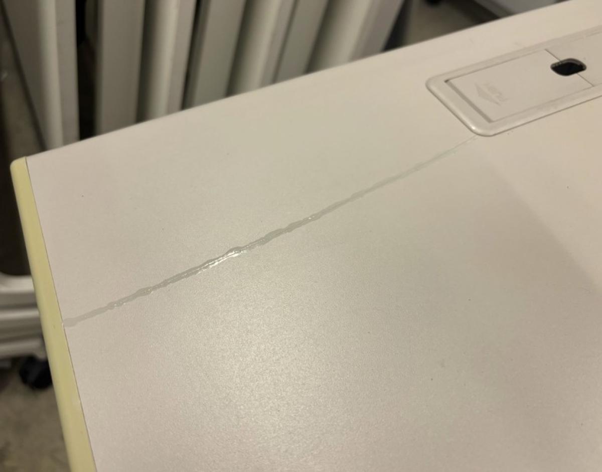 ※見た目を気にしなければお買い得!キズあり商品! ■イトーキ製 片袖デスク W1000×D700×D700mm ※天板ヒビ割れ補修跡あり※塗装剥がれあり【在庫入替セール品!(本在庫限定価格)】- 川崎店