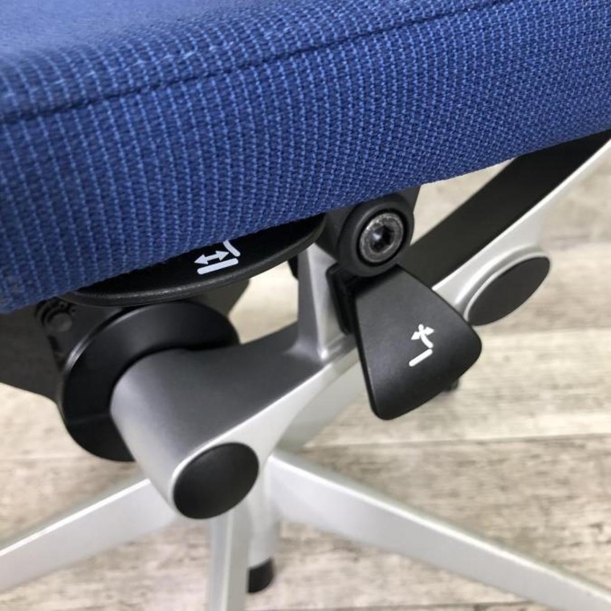 両手を自然に下ろした位置にあるレバーにて、座面の前後スライド調整(前後50mm)が可能です。