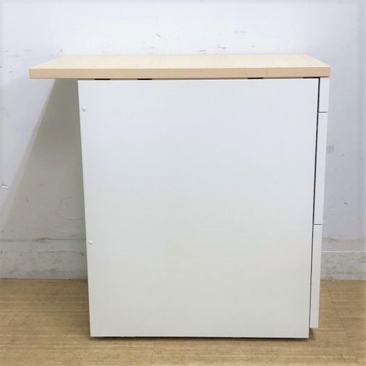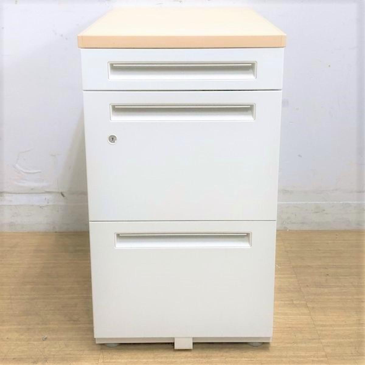 【在庫入れ替えSALE】3段脇机 内田洋行 スカエナ 本体:ホワイト 天板:ナチュラル 鍵付き〈岐阜・愛知・三重・静岡・福井〉- 岐阜店