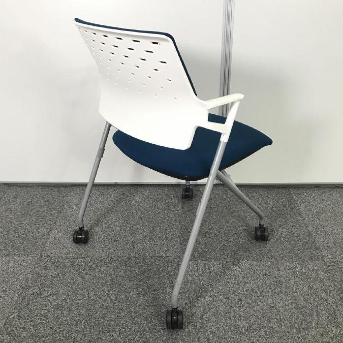 【在庫入れ替えSALE】【スタイリッシュなデザイン!水平スタッキングで準備や片づけの際にイスを持ち上げる必要がない!】■コクヨ(KOKUYO)製 ピエガシリーズ 肘付ミーティングチェア ■ブルー ■固定肘 ■キャスター付 ■会議用チェア 〈岐阜・愛知(名古屋)・三重・静岡・福井〉- 在庫数