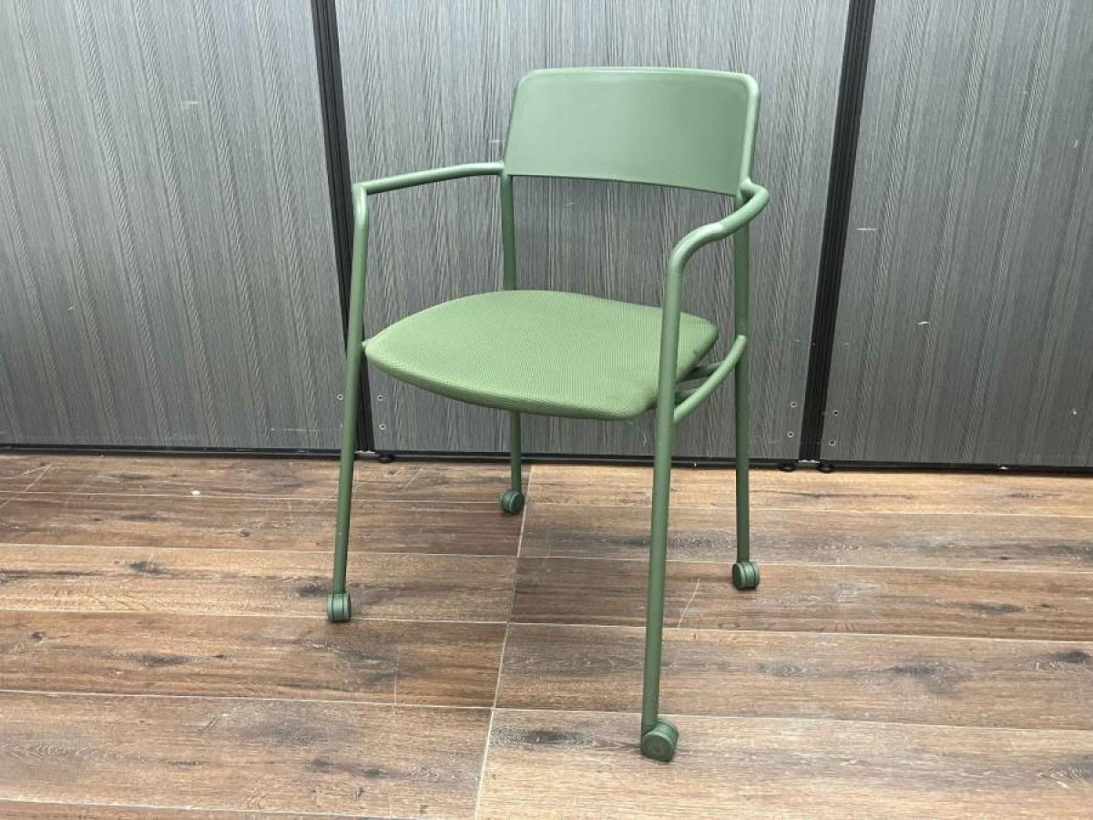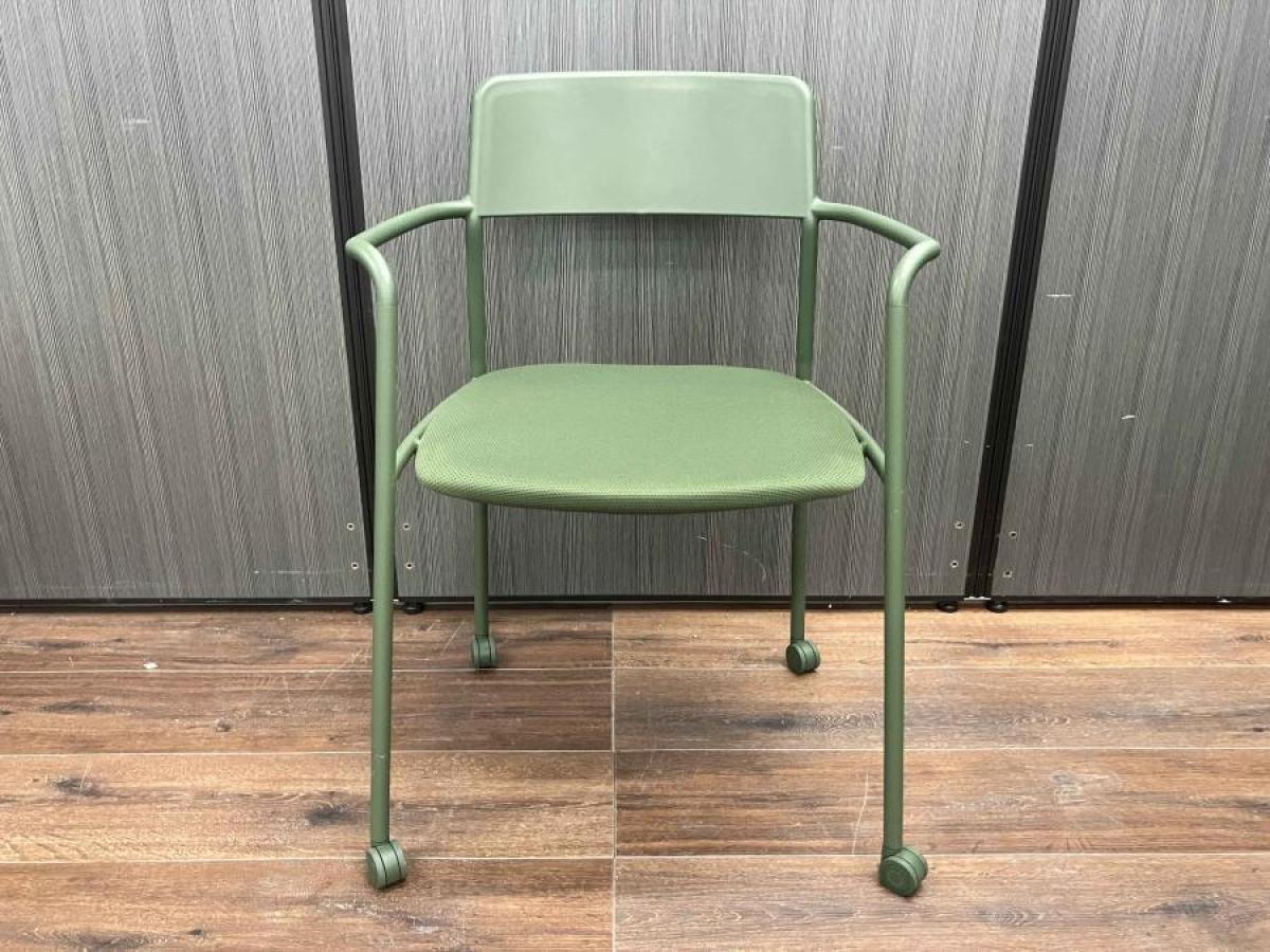 【在庫入れ替えSALE】【スタイリッシュデザインのミーティングチェア!】■コクヨ (KOKUYO) エニー (Any) ネスティングチェア 平行スタッキング 肘付き ■キャスター付き グリーン〈岐阜・愛知・三重・静岡・福井〉- 岐阜店