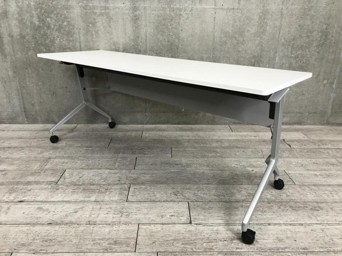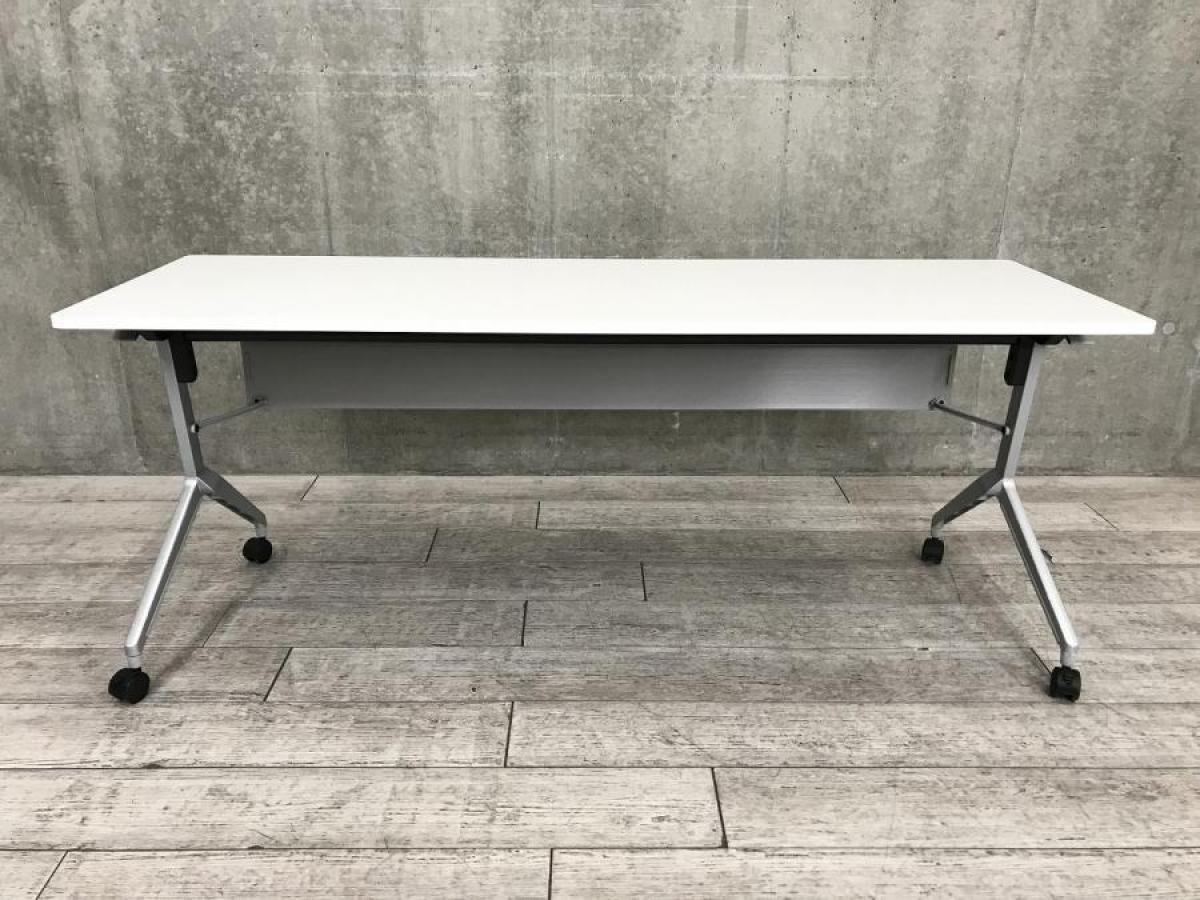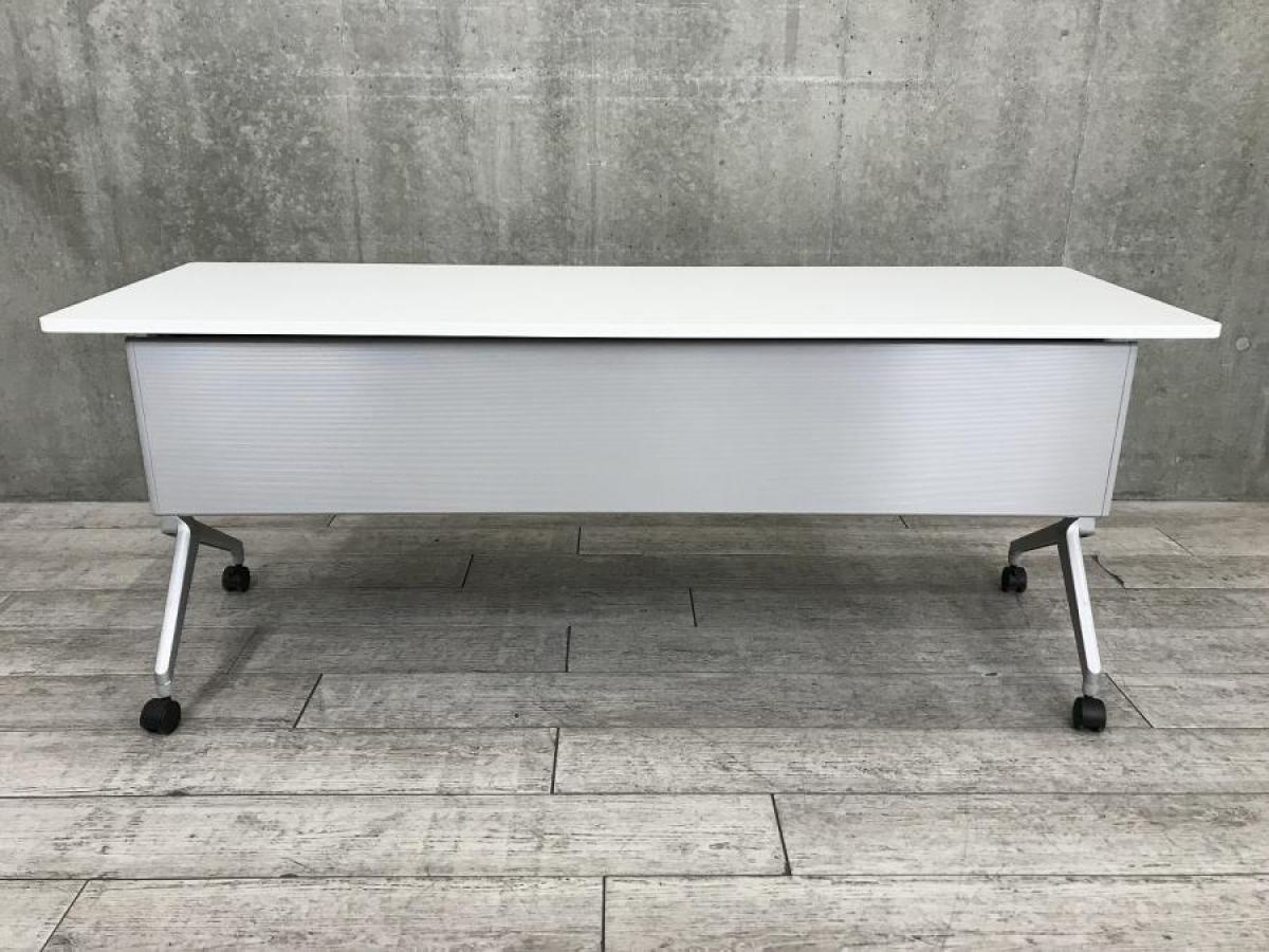 【会議・研修室などに・使わないときは畳んで省スペース!】■コクヨ(KOKUYO)製 リーフライン(Leafline)シリーズ サイドスタックテーブル フラップテーブル ■ホワイト天板 幕板付き W1800×D600㎜ 【2~3名での使用に最適】【IB】在庫がある店舗一覧