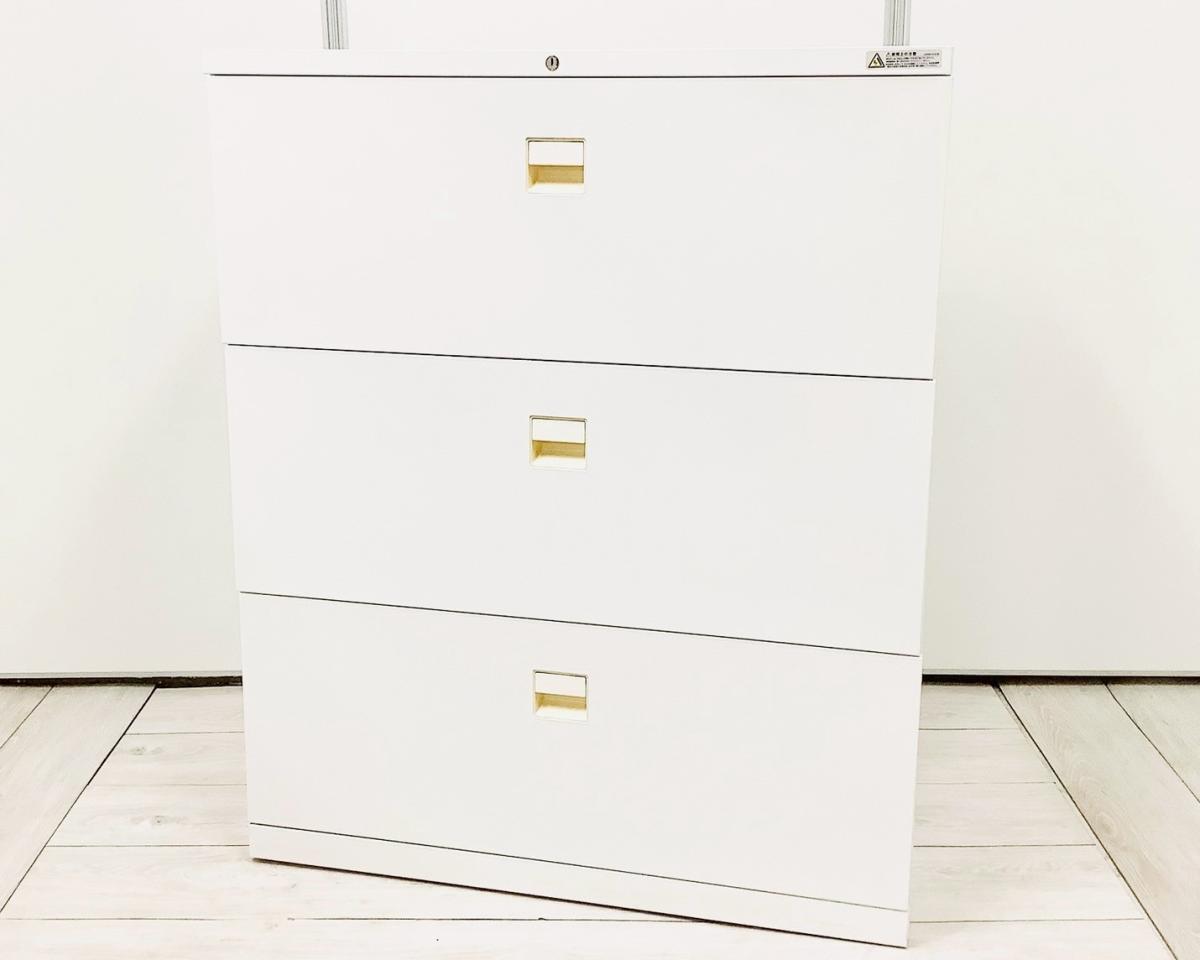 【オフィス書類をスッキリ整理!】■オカムラ製 3段ラテラル書庫 ホワイト天板付き ■ファイル収納にオススメ!引出し型キャビネット!【在庫入替セール品】