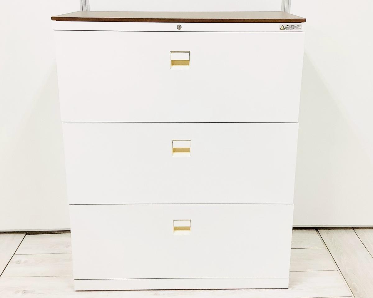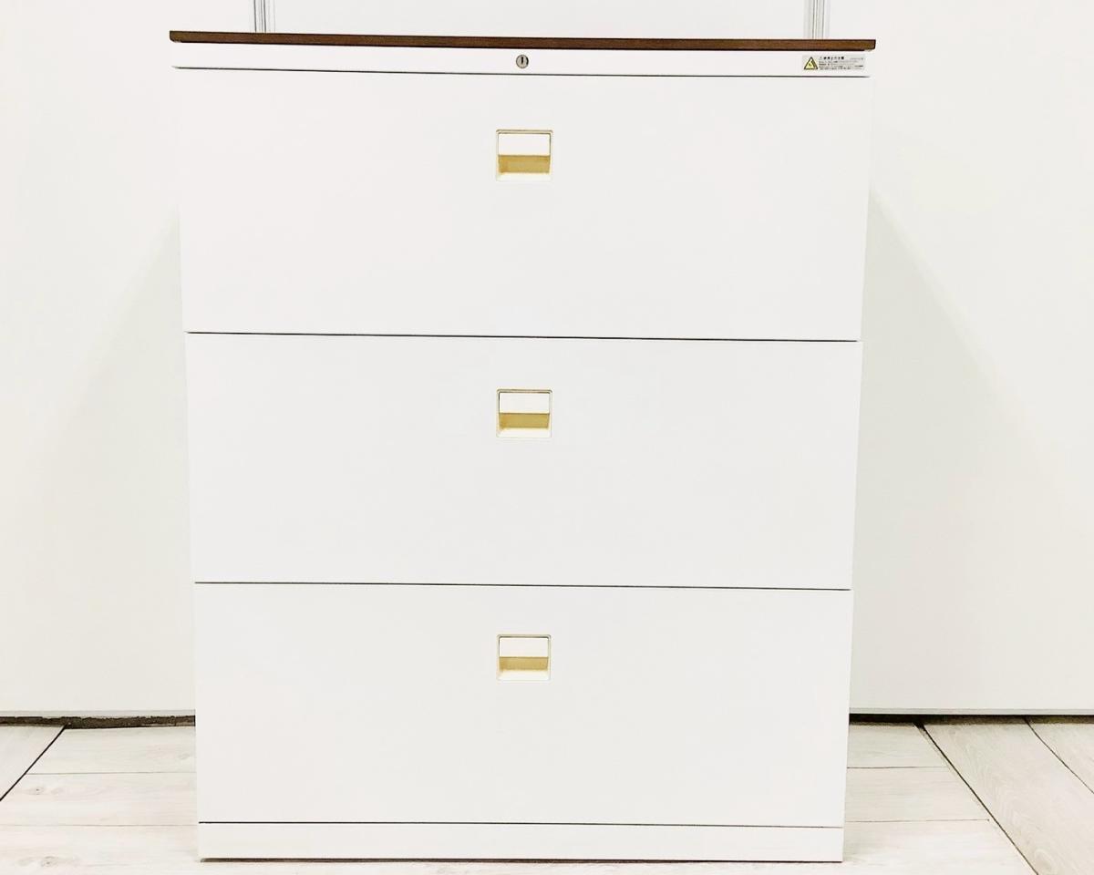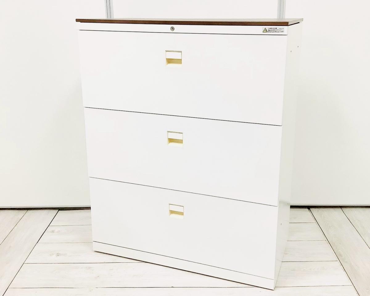【オフィス書類をスッキリ整理!】■オカムラ製 3段ラテラル書庫 ホワイト天板付き ■ファイル収納にオススメ!引出し型キャビネット!【在庫入替セール品】